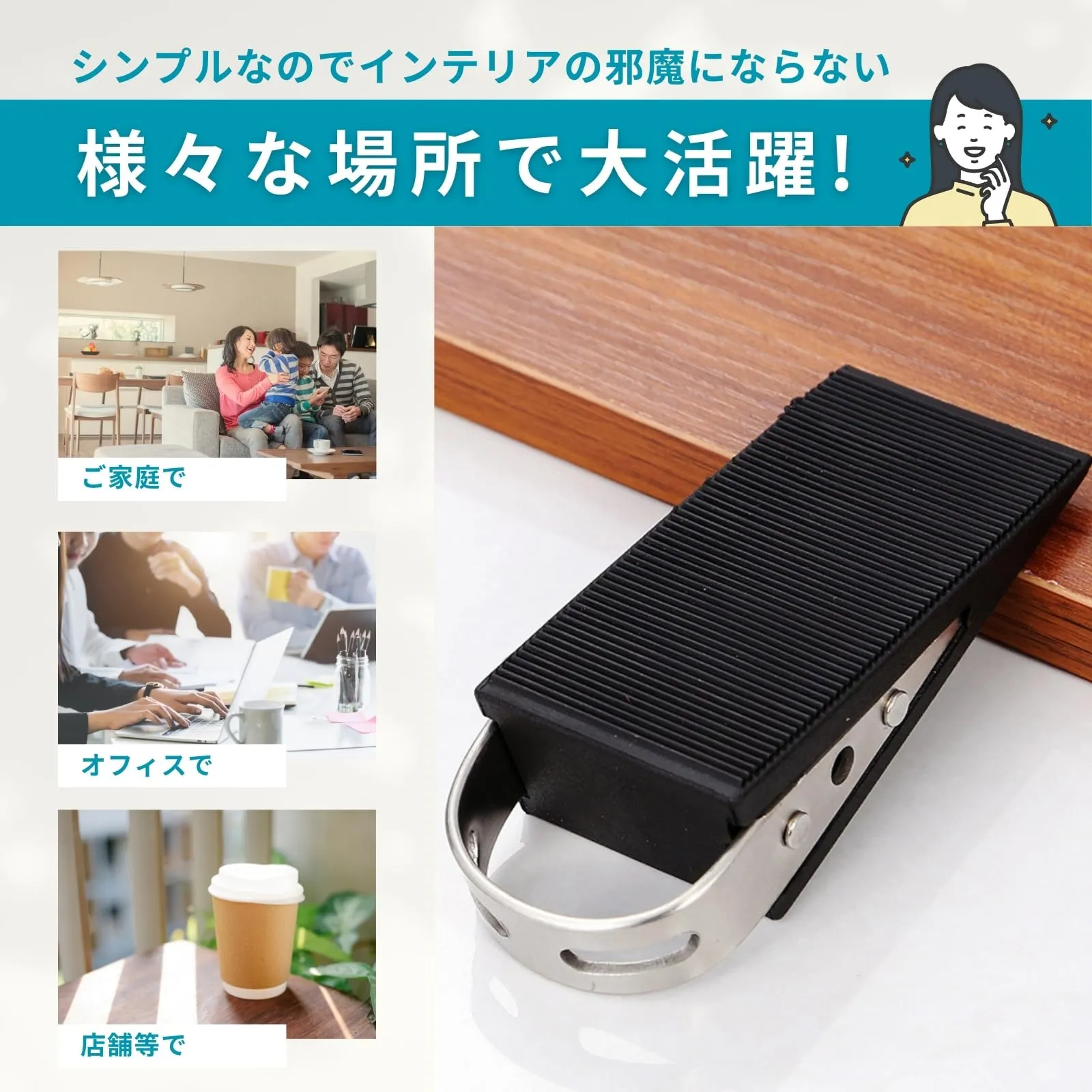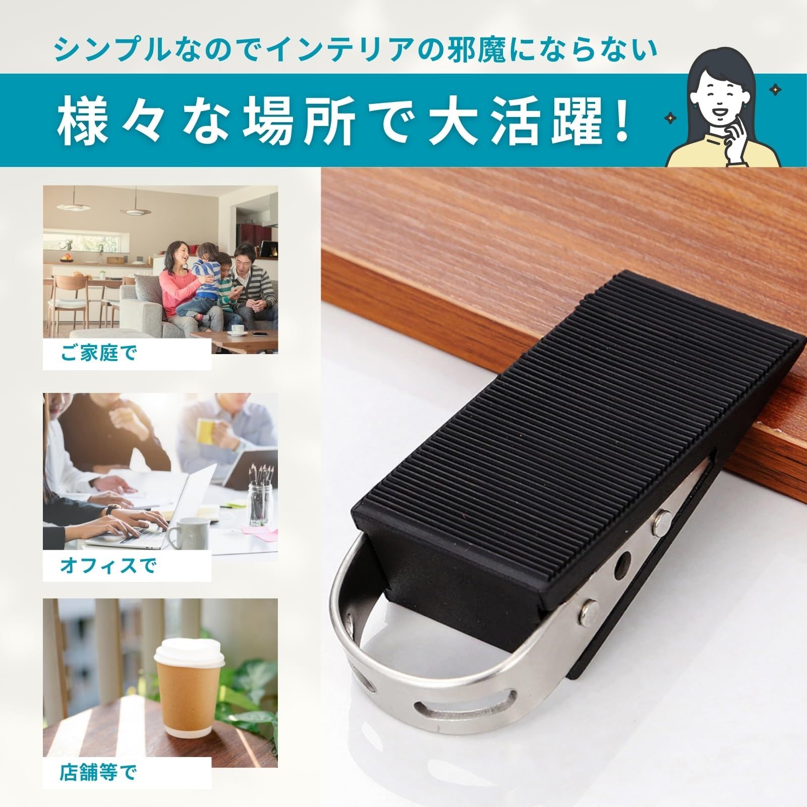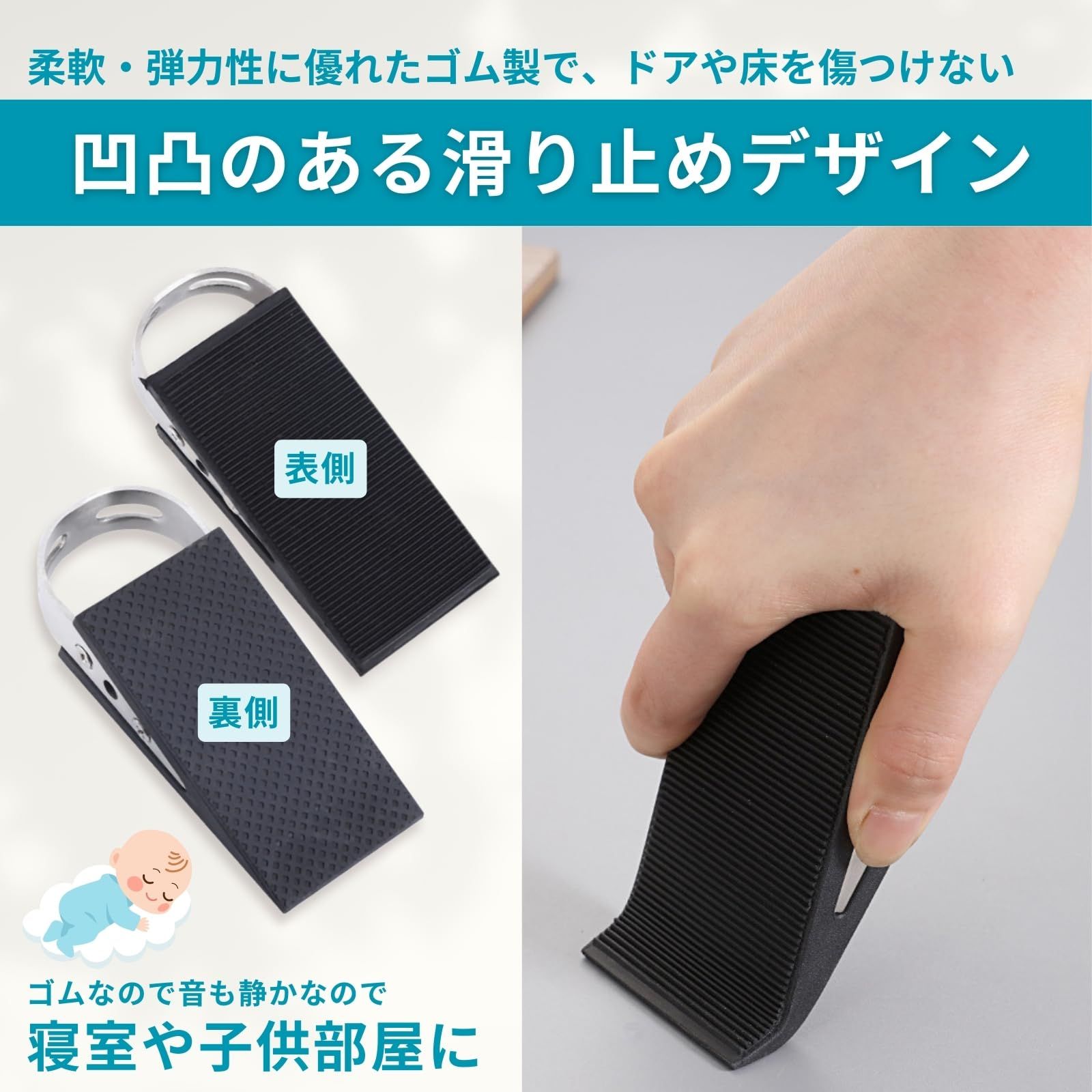 柔軟性・弾力性に優れたゴム製でドアや床を傷つけず、表面は凹凸のついた滑り止めデザインでしっかりと固定してくれます。また、ゴムなので音も静かで寝室や子供部屋などにもおすすめです。