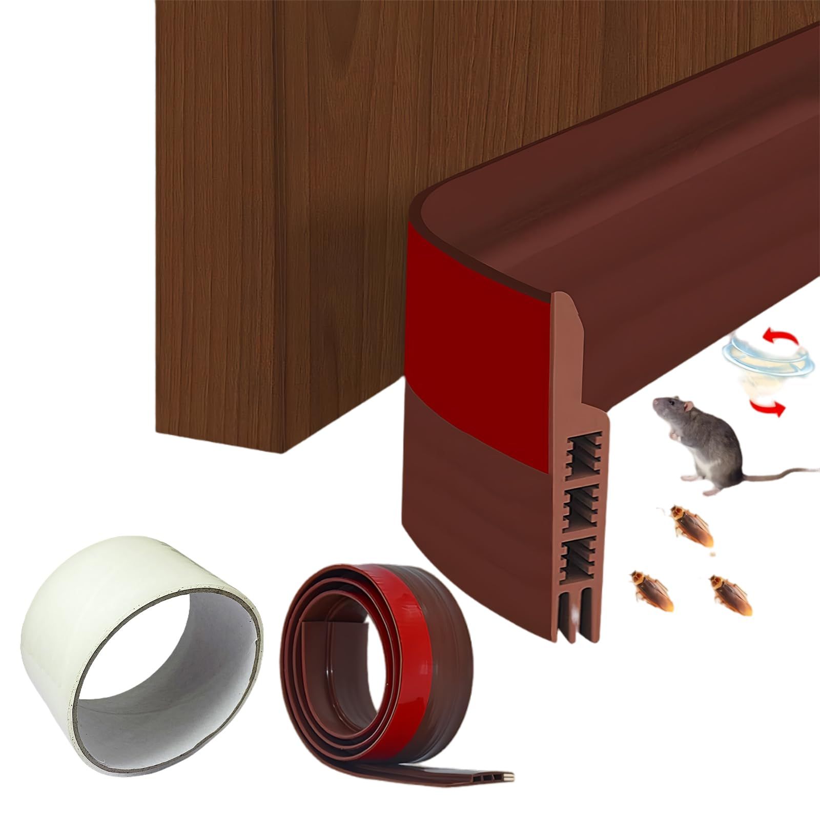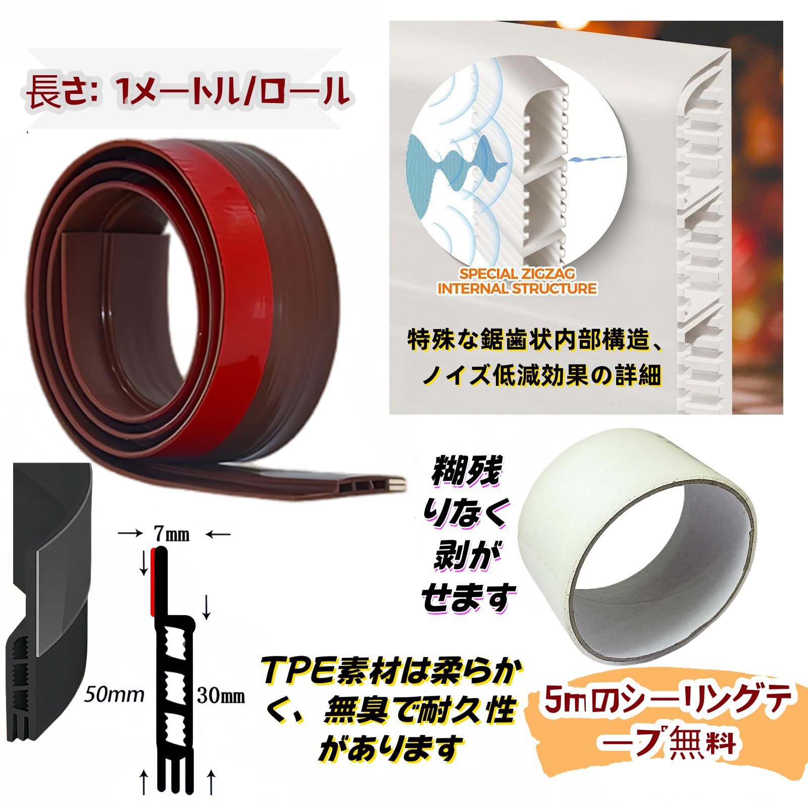 ドア下部シール 1m & 隙間テープ 5m , すきま風防止 省エネ 冷暖房効率アップ 気密 強力粘着 防音 防虫 防水 花粉対策 玄関 自動ドア 窓枠用 賃貸対応 剥がし無痕 (レッドブラウン ?棕)