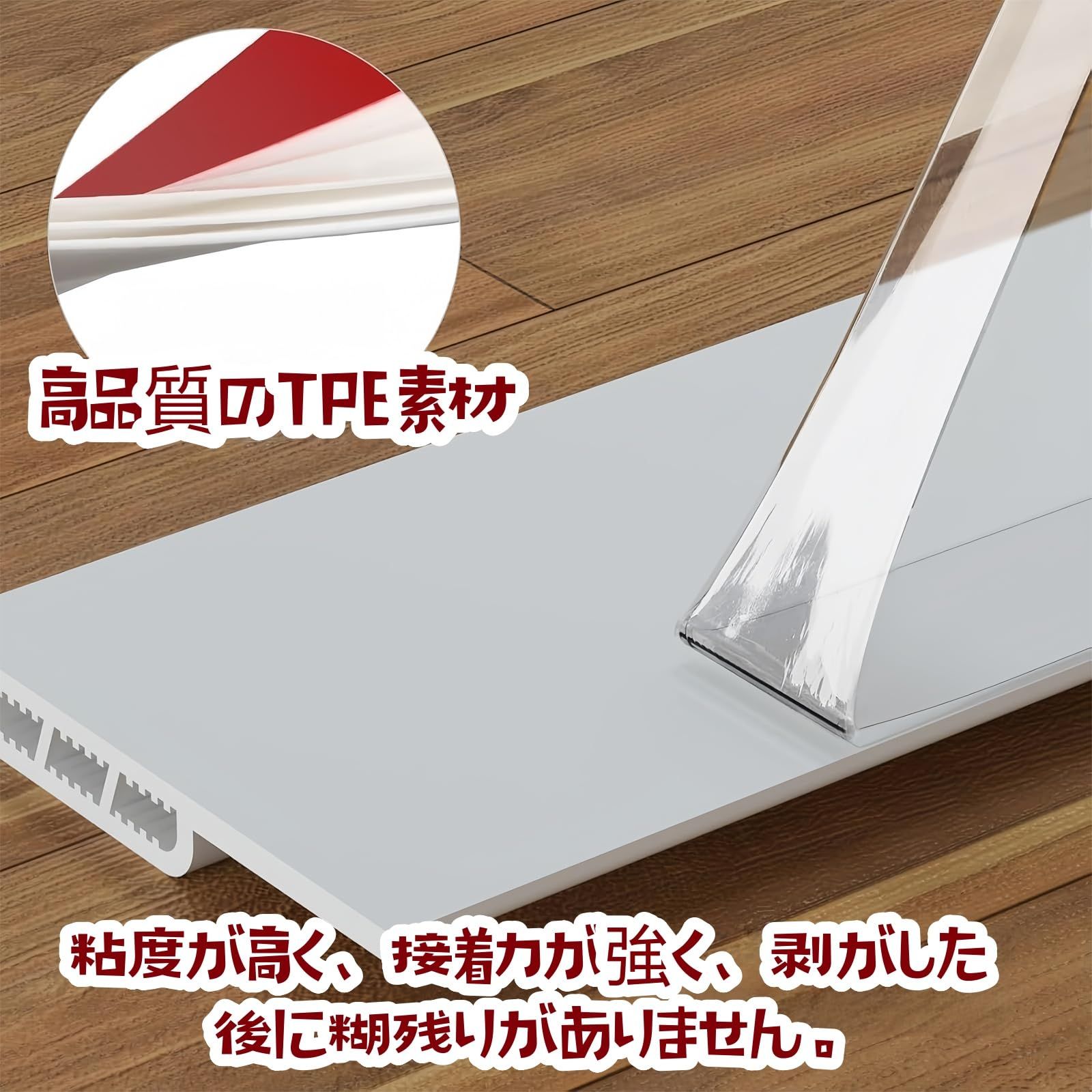 【透明・剥がしても跡残らない 賃貸住宅でも安心】隙間テープは透明で目立たず、剥がす際に壁やドア枠に糊残りがほとんどない設計です。賃貸住宅やマンションにお住まいの方でも、気兼ねなく施工でき、退去時も安心です。 ???