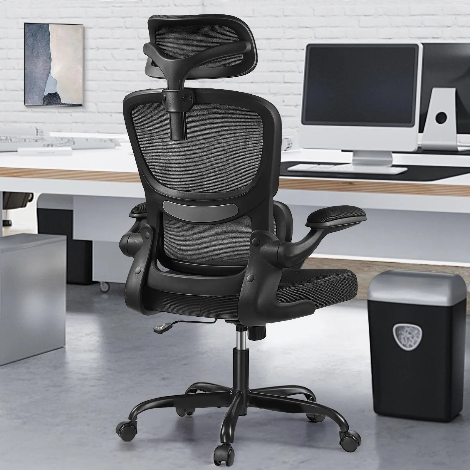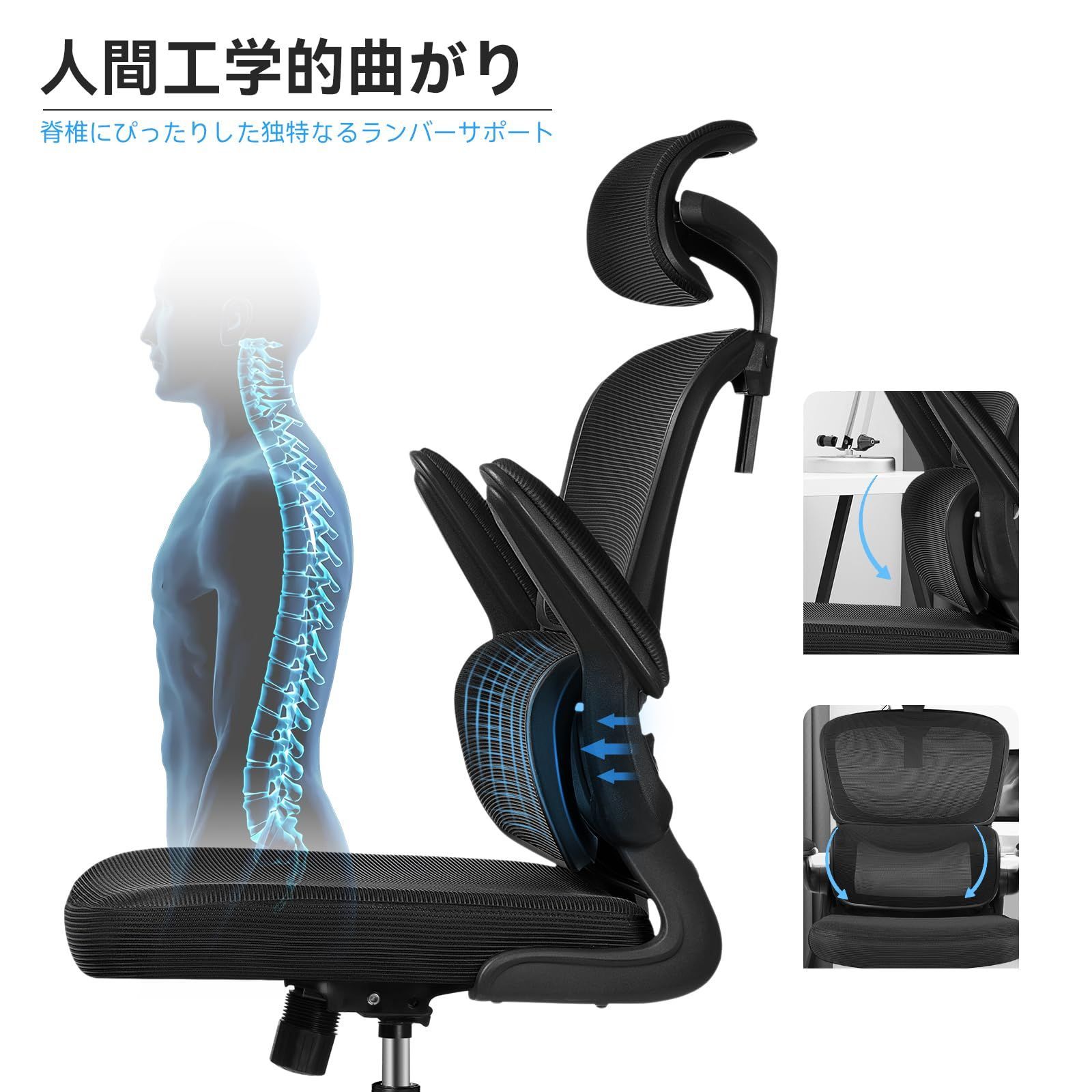 Razzor オフィスチェア 椅子 イス 疲れない 勉強 学習 360度回転 腰に良い テレワーク 人間工学椅子 デスクチェア ランバーサポート付き 可動式ヘッドレスト 通気性メッシュ パソコン ブラック 黒 RZ2202H-Black