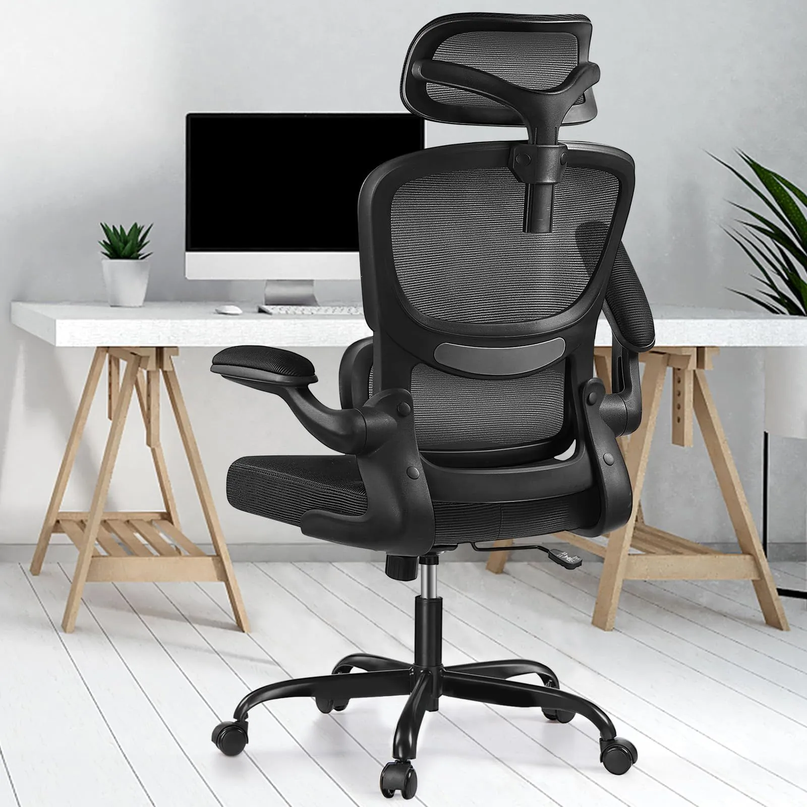 新商品 パソコン 通気性メッシュ ブラック 可動式ヘッドレスト ランバーサポート付き デスクチェア 人間工学椅子 テレワーク 黒 腰に良い 360度回転 学習 勉強 疲れない RZ2202H-Black イス 椅子 オフィスチェア Razzor