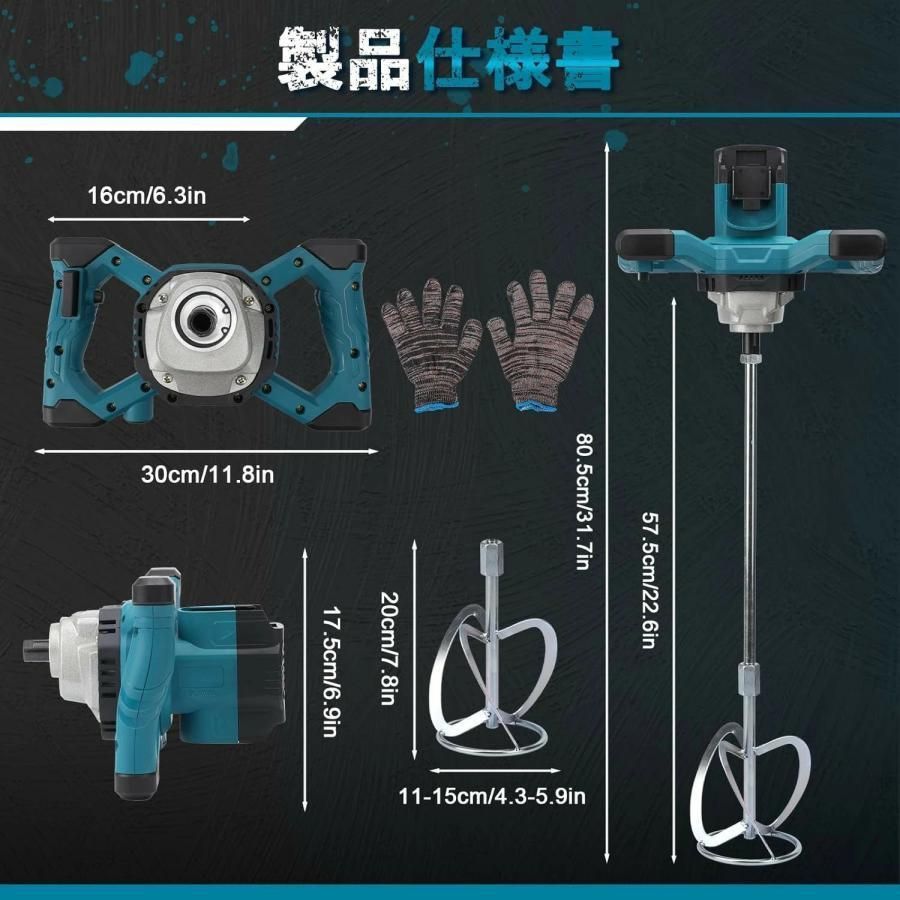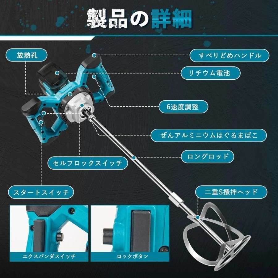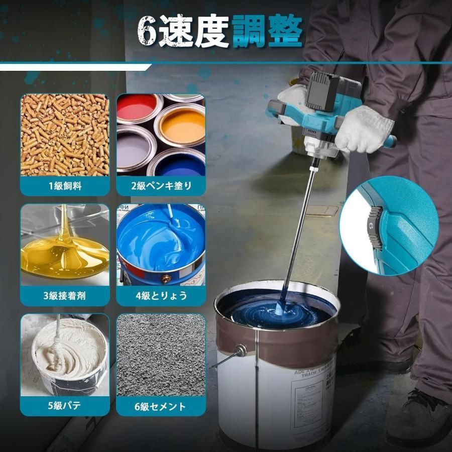 大好評☆充電式 カクハン機 コードレス かくはん機 プロ用 パワーミキサー 攪拌機 6段変速 ブラシレスモーター 強力 最大60N.m マキタ 過負荷保護 携帯用7点セット