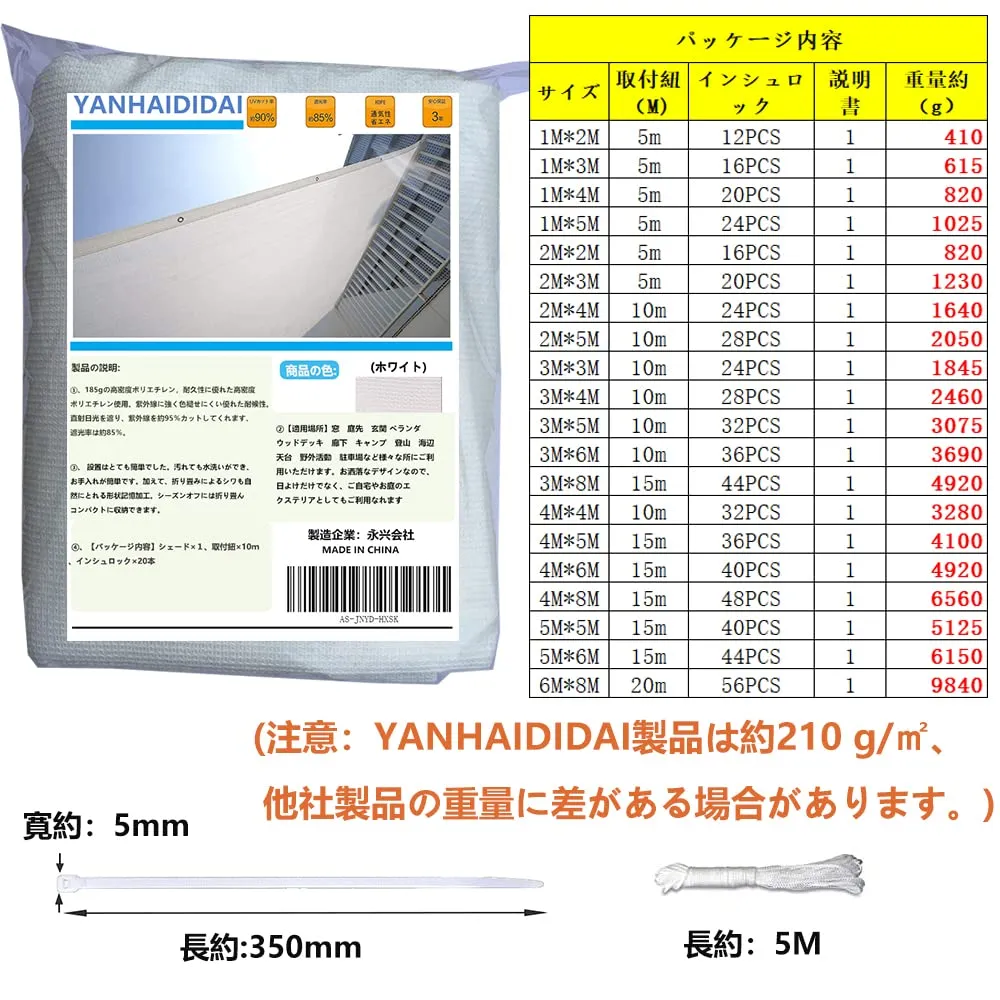 【パッケージ内容】シェード×1、取付紐×10m、インシュロック×20本