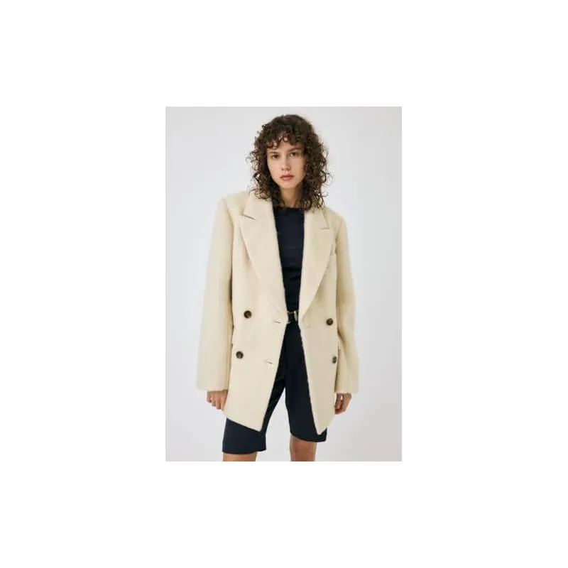 【OVER BLAZER / オーバーブレザー】 ※商品画像はサンプルのため、色味やサイズ感、素材の混率等の商品仕様に変更がある場合がございます。 起毛感のある素材を使用したダブルカラーのブレザー。 オーバーサイズながらも着膨れしないよう、生地の厚さに合わせて身頃のサイジングにこだわりました。 ブレザーというメンズっぽさのあるアイテムを、程良い甘さをミックスして着用できるアイテムです。 透け感:なし 光沢感:なし 伸縮性:なし 裏地:あり