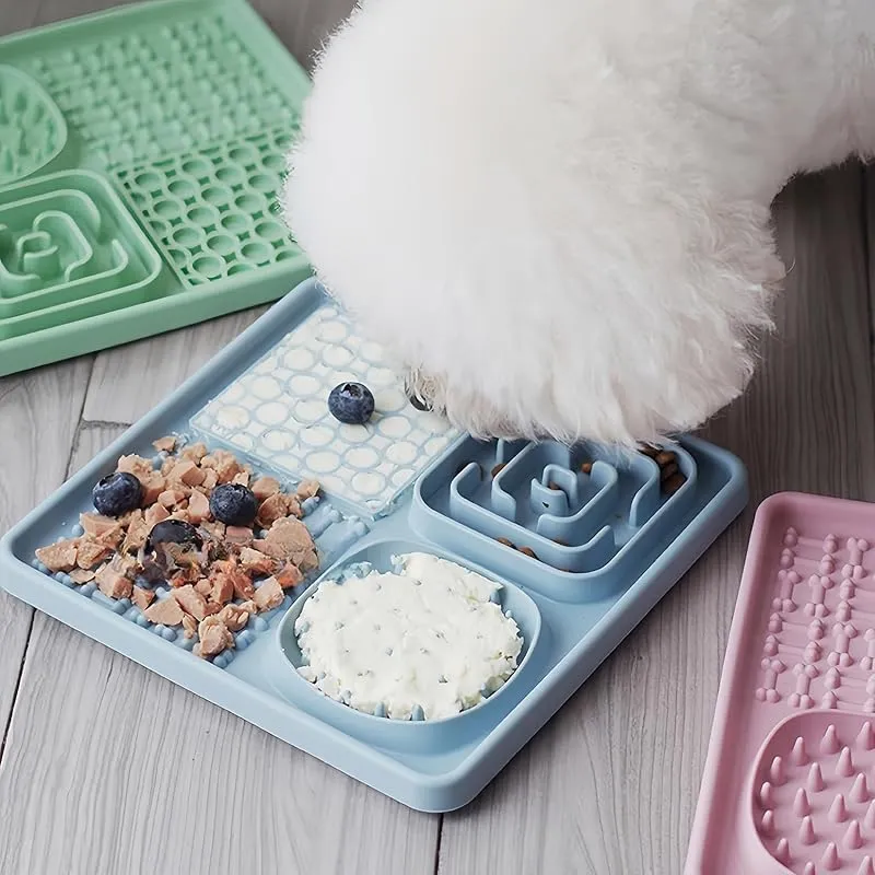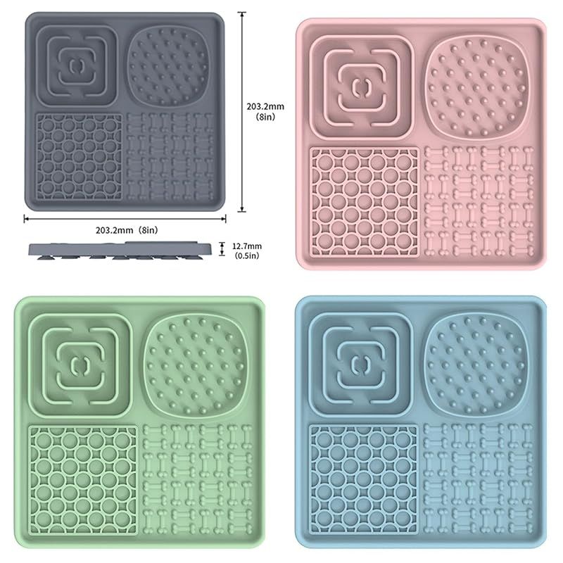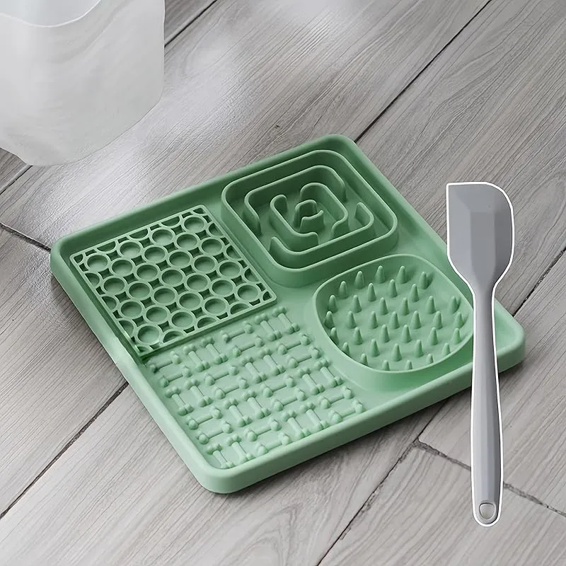 Orirya ペットボウル 犬 早食い防止 食器 犬 フードボウル 猫 餌入れ 犬 餌入れ 餌皿 猫グッズ ペット用品 4in1ペット用シリコン舐めマット 滑り止め吸盤 フードマット スローフィーダー 舐めエリア付き 20*20cm グリーン 1
