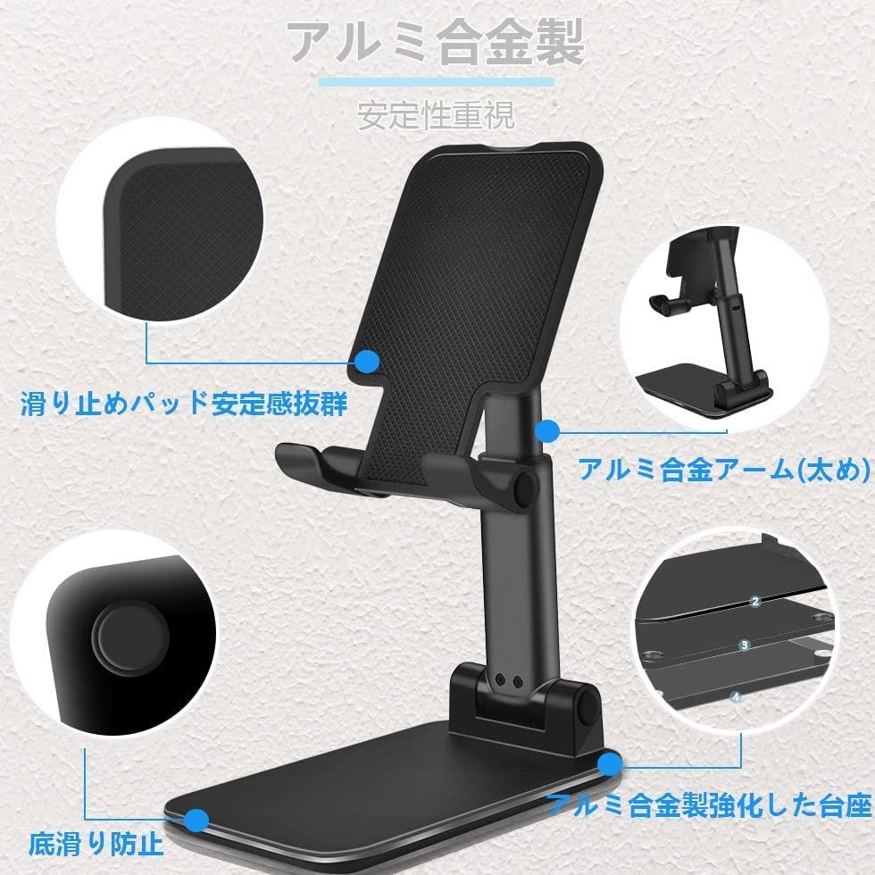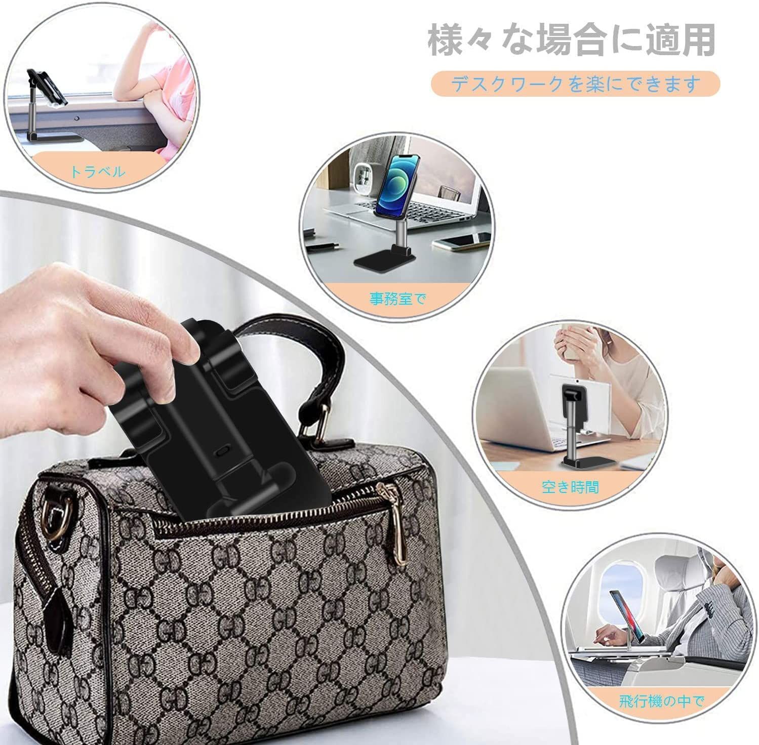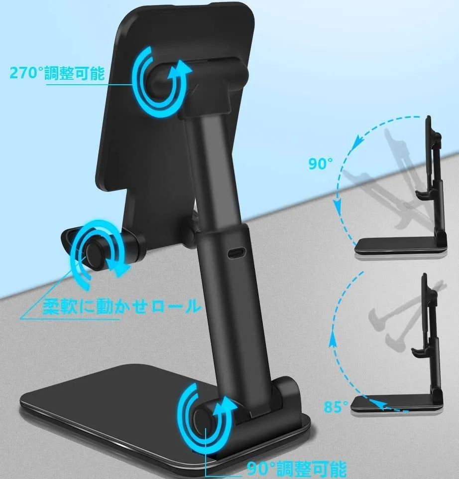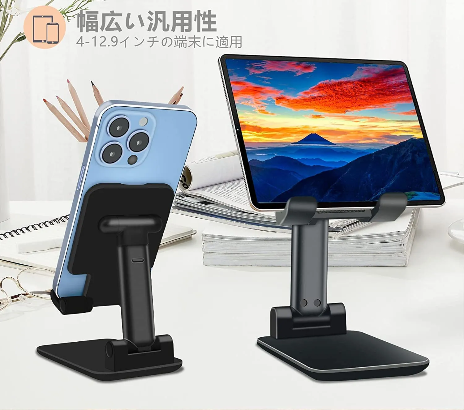スマホスタンド 卓上 スタンド ホルダー 高度調整可能 スマホ スタンド おりたたみ 滑り止め 携帯 スタンド For iPhone/ipad/Switch/Samsung/Sony/Nexus/Kindle/Android(ブラック)