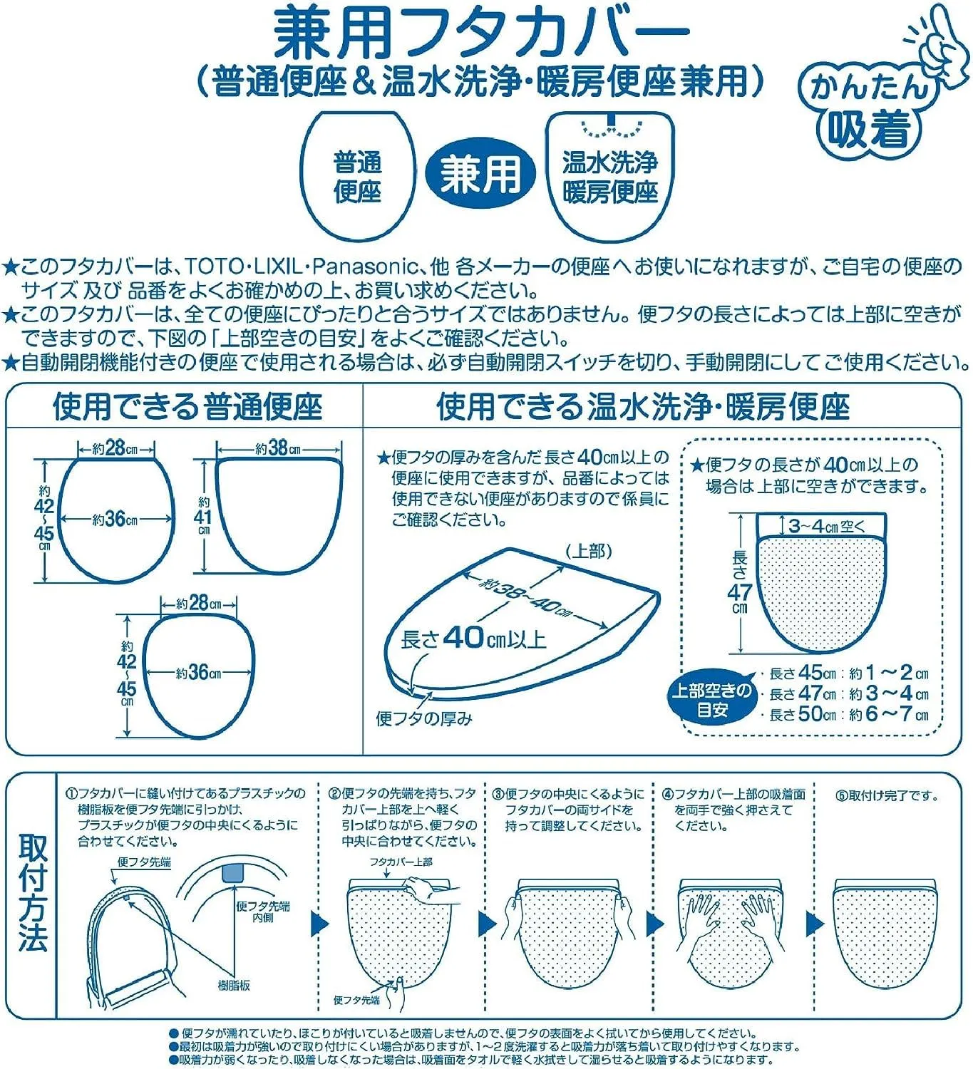●フタカバーは洗浄暖房便座の有無にかかわらずお使い頂けるマルチ型です。(吸着タイプ) ※フタカバーには適合がございますので、適合をお確かめくださいませ。