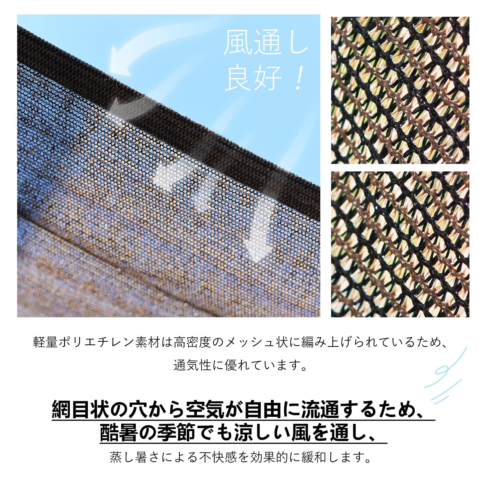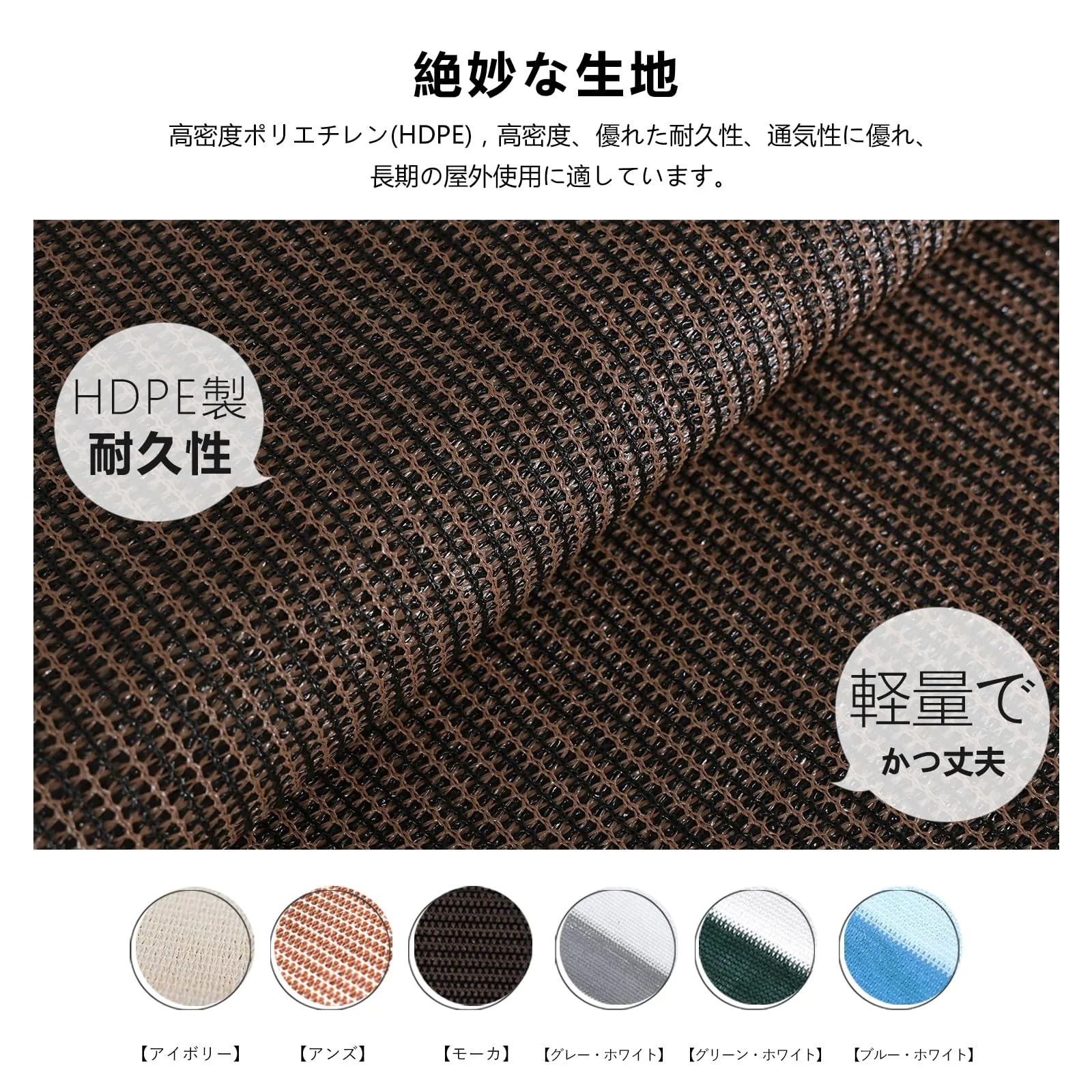 UV対策:通気性や遮光性に優れ、シェードの内側を涼しくします。有害な紫外線も90%カットするので、子供たちが遊ぶお庭や砂場の日よけに最適です。