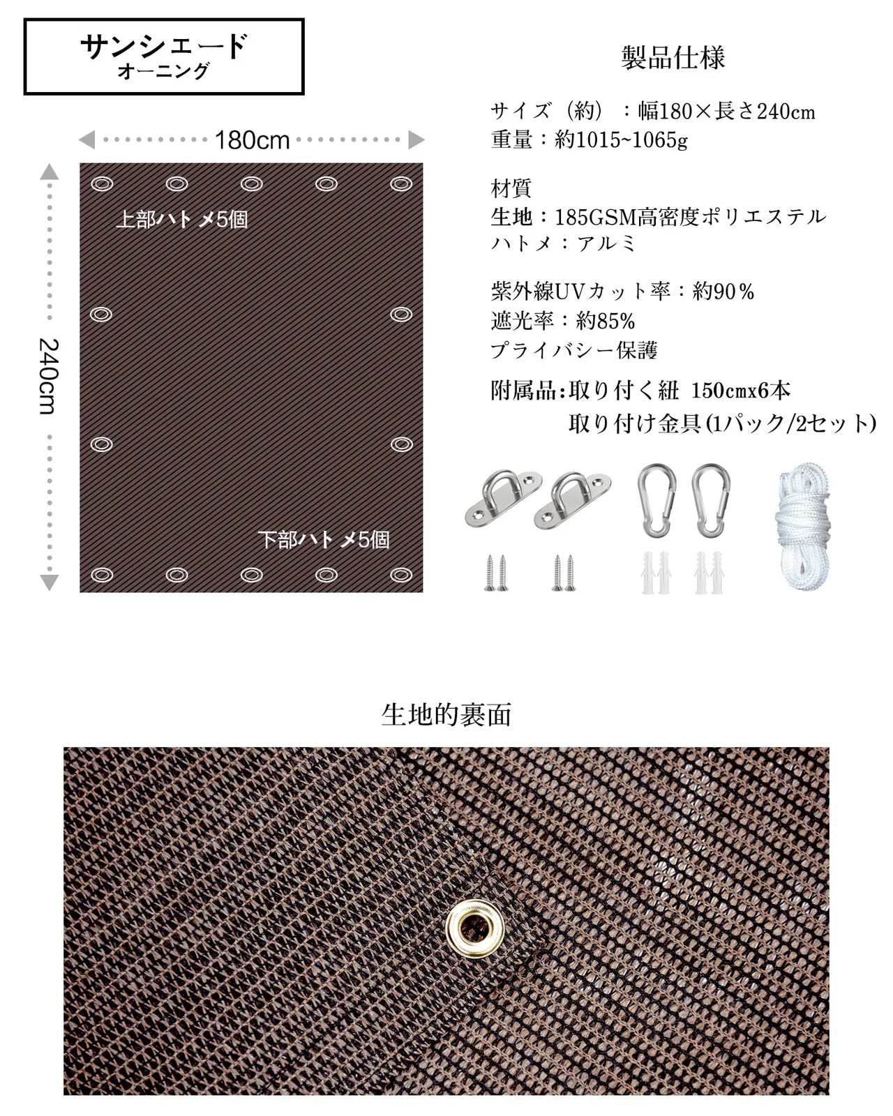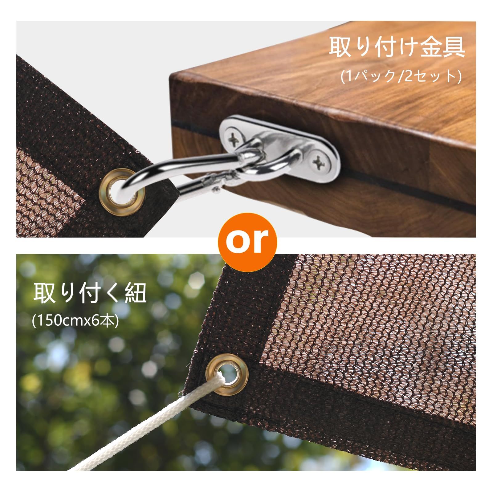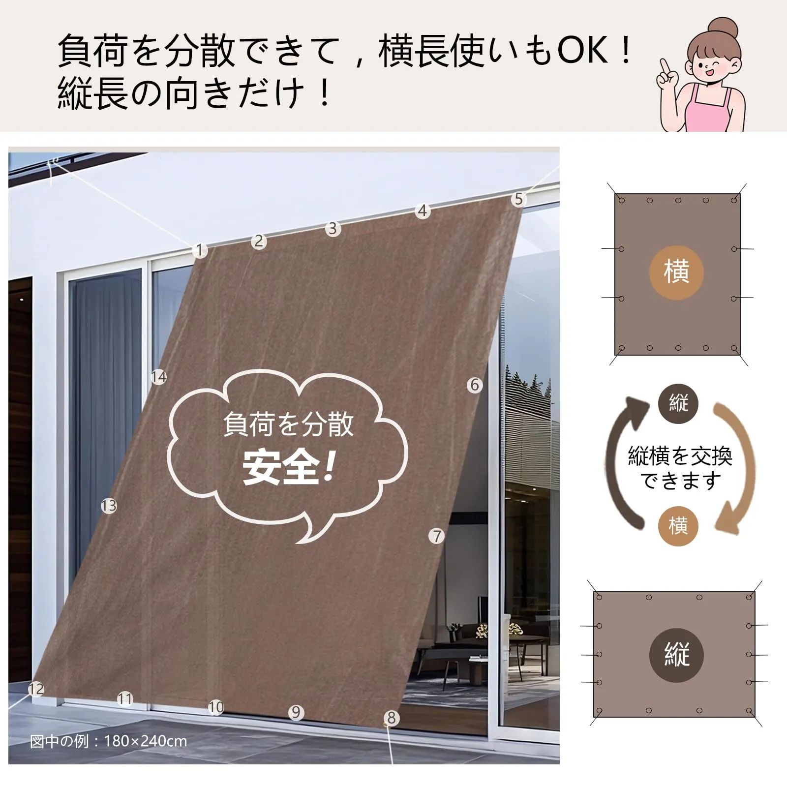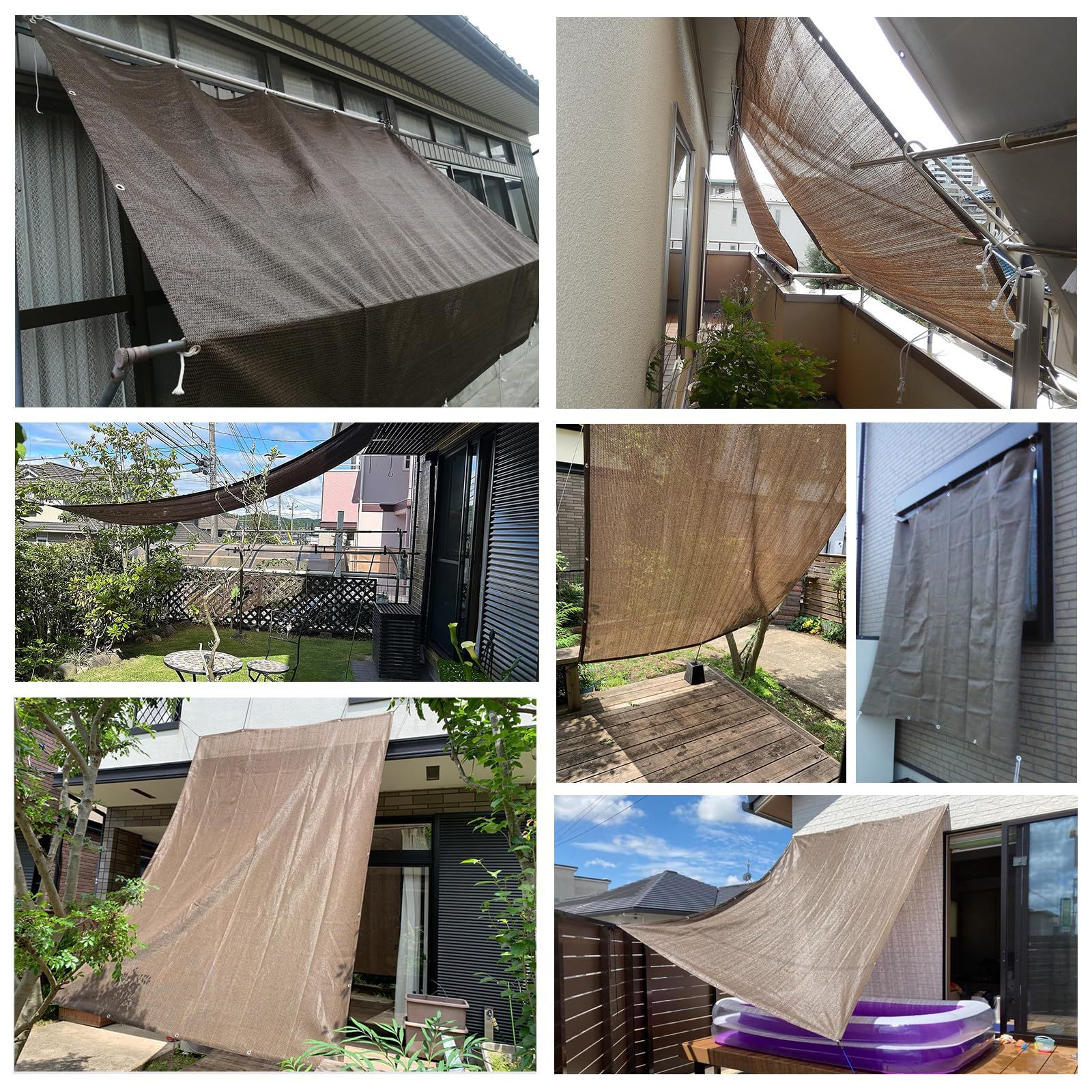 取り付け:錆びないのゴールデンアルミハトメが付いているので、付属品:6本x1.5m取付けひも、ベランダや窓ペ、廊下、庭下、庭先、玄関などに簡単に取り付けることができます。お洒落なデザインなので、日よけだけでなく、ご自宅やお庭のエクステリアとしてもご利用なれます。