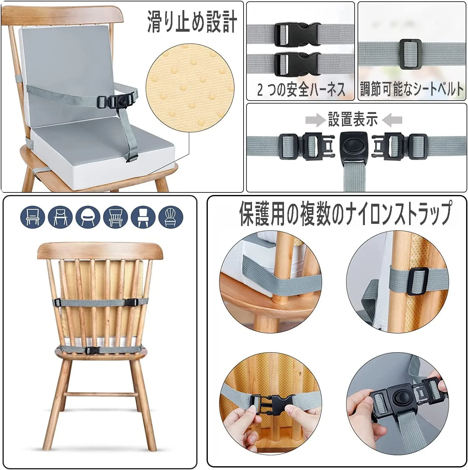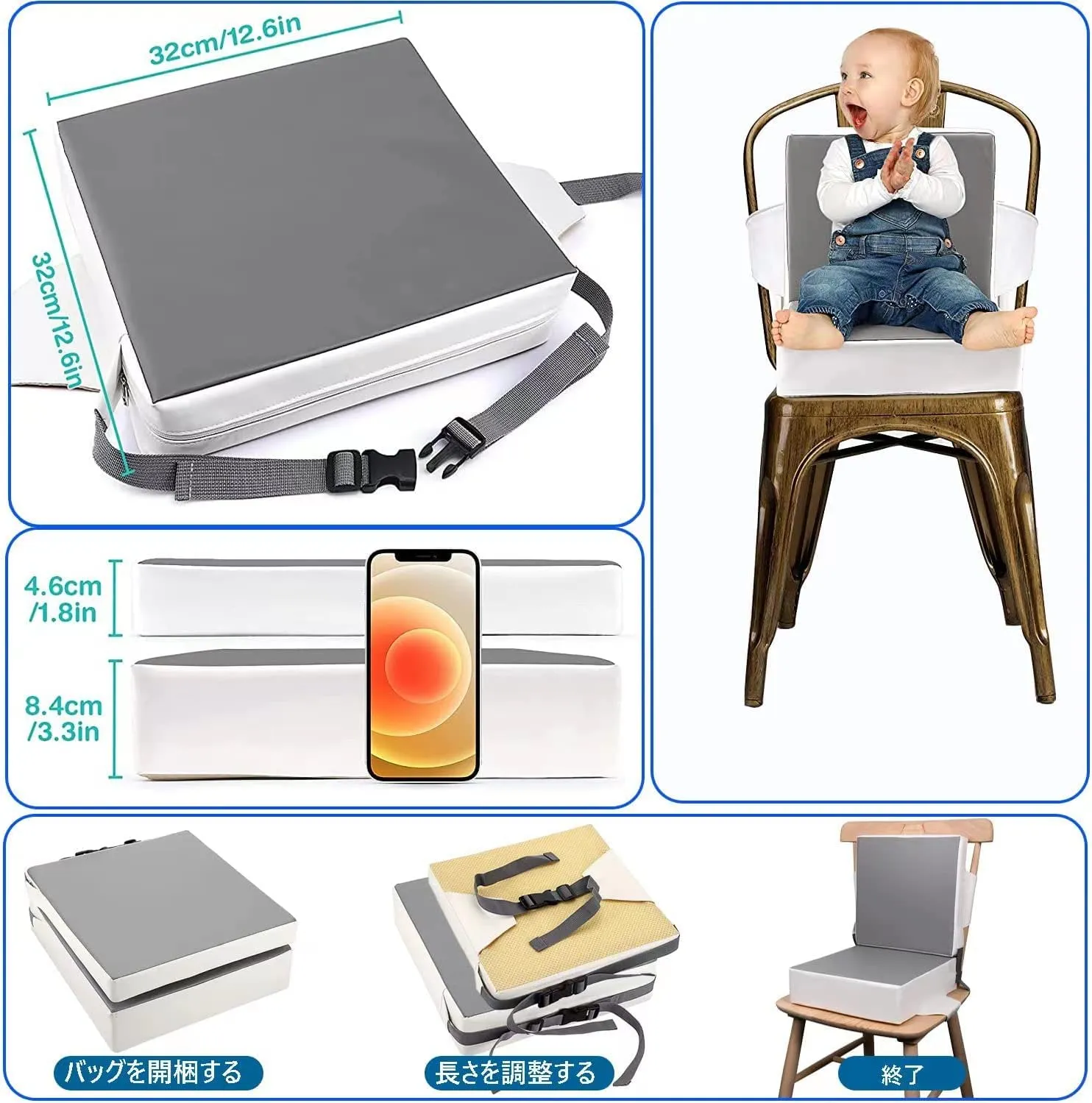 新品 大判高さ調節お子様用クッション 子供お食事クッション ベビーチェア用 チェアクッション 洗える取り外し可能 こども座布団 ダイニング チェアクッションキッズ用 厚い チェア シート パッド マット ハイチェア ローチェア 兼用 (PUの背もたれ)