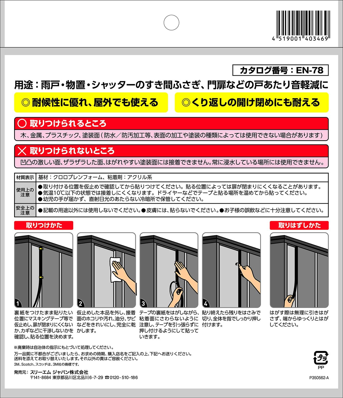 【雨・湿気に強い素材のすきまテープ】雪・雨・湿気に強いクロロプレンフォームを採用!一般的なスポンジタイプのテープとは違い、ボロボロにならず、長く使える高耐久・高耐候仕様です。