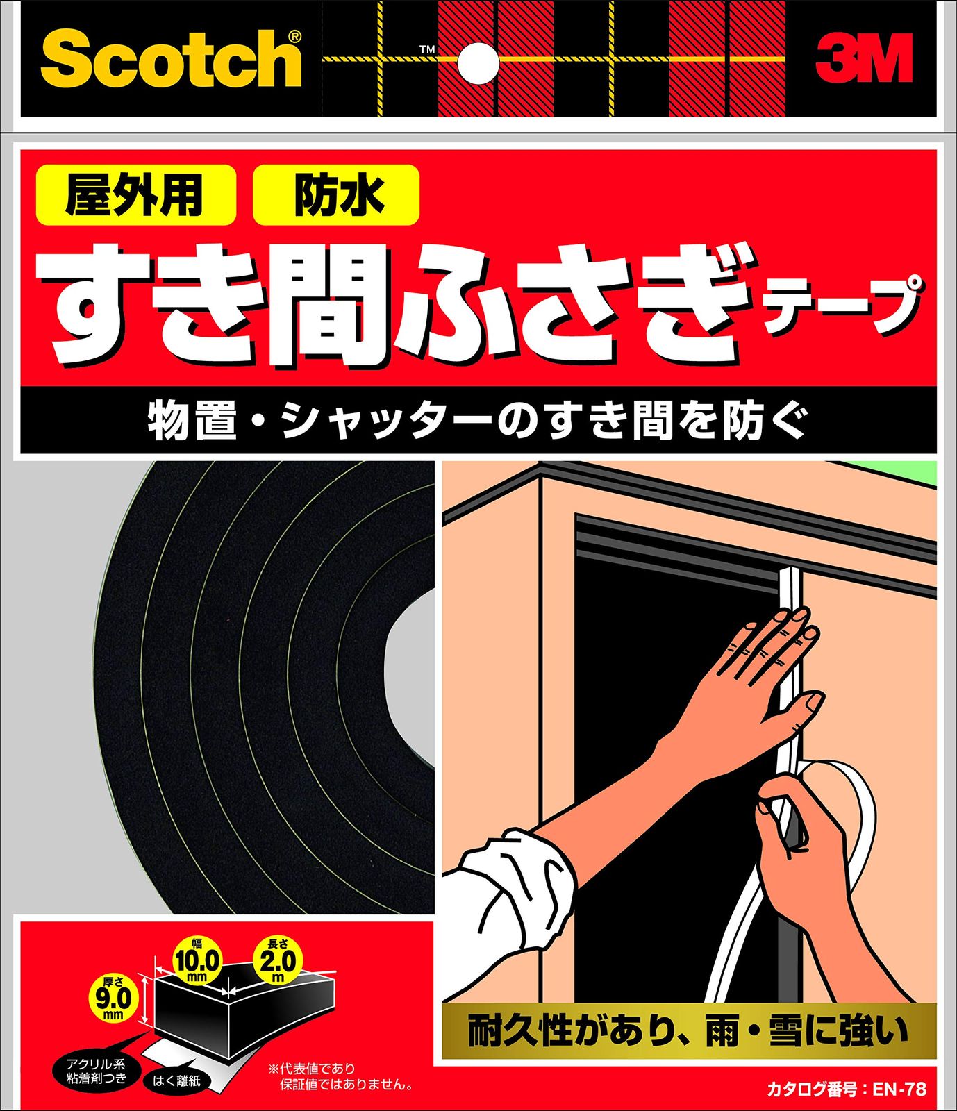 新品 3M スコッチ すき間ふさぎ防水テープ 屋外用 9mm×15mm×2m 黒 7010673159