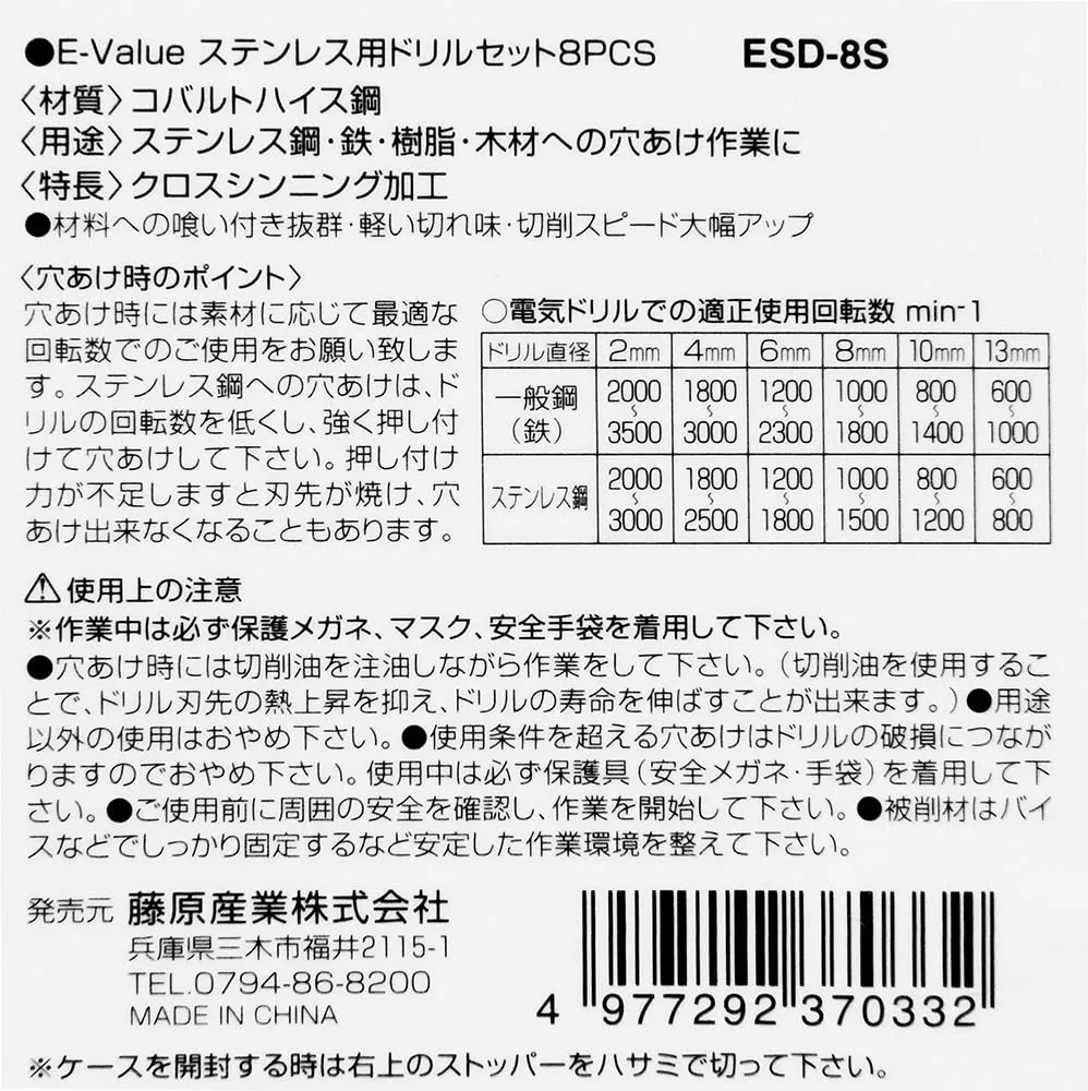 新品 イーバリュー(E-Value) ステンレス用ドリルセット 丸軸 8本組 ESD-8S