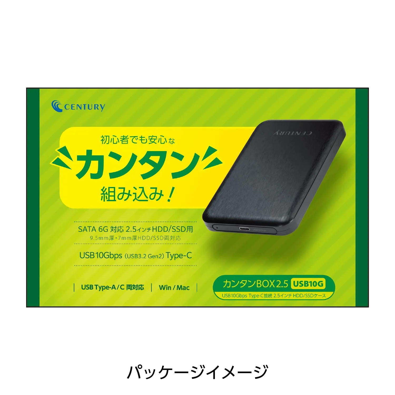 新品 センチュリー「カンタンBOX2.5 USB10G」USB 10Gbp(USB3.2Gen2) Type-C接続2.5インチSATA HDD/SSDケース CKB25U10GC_FP