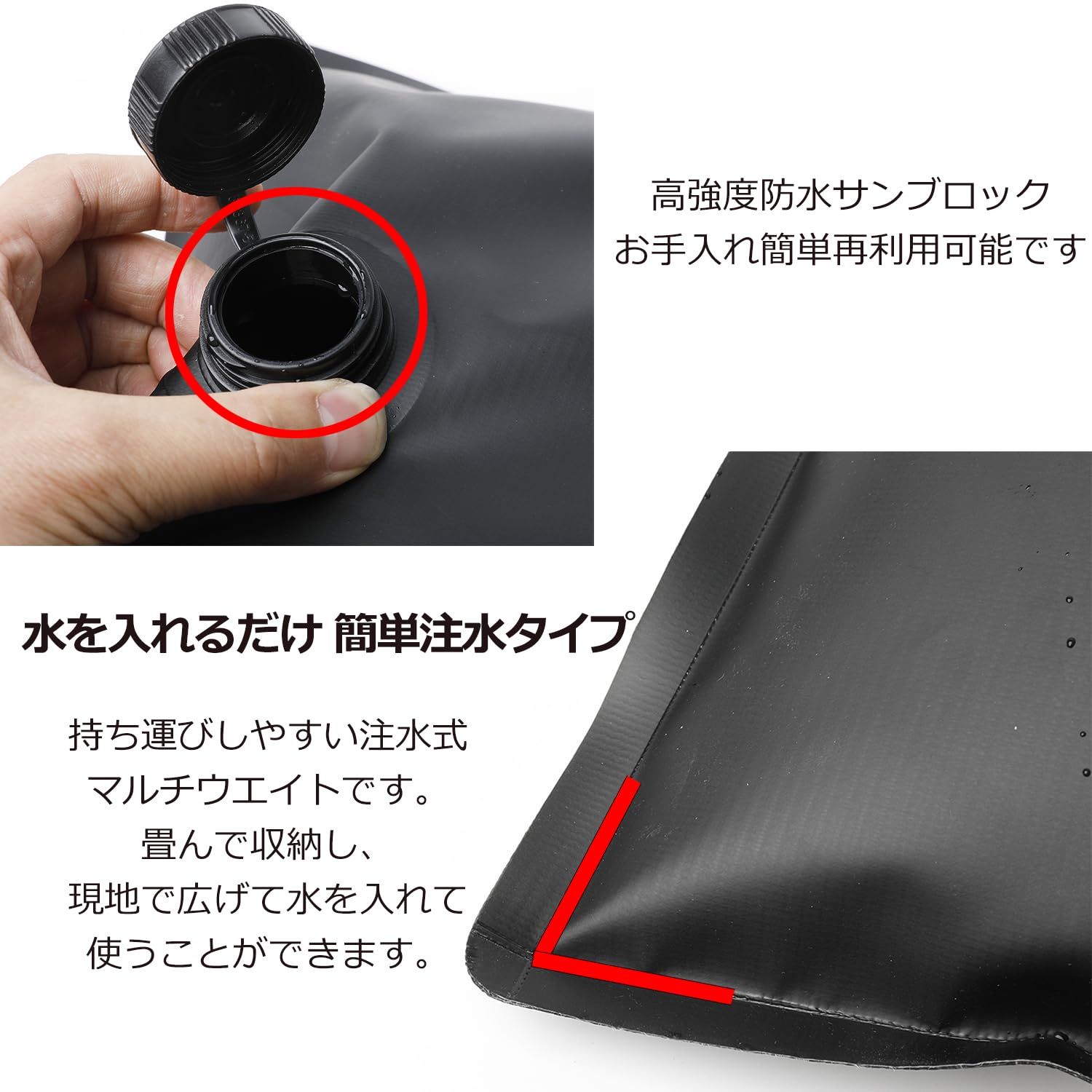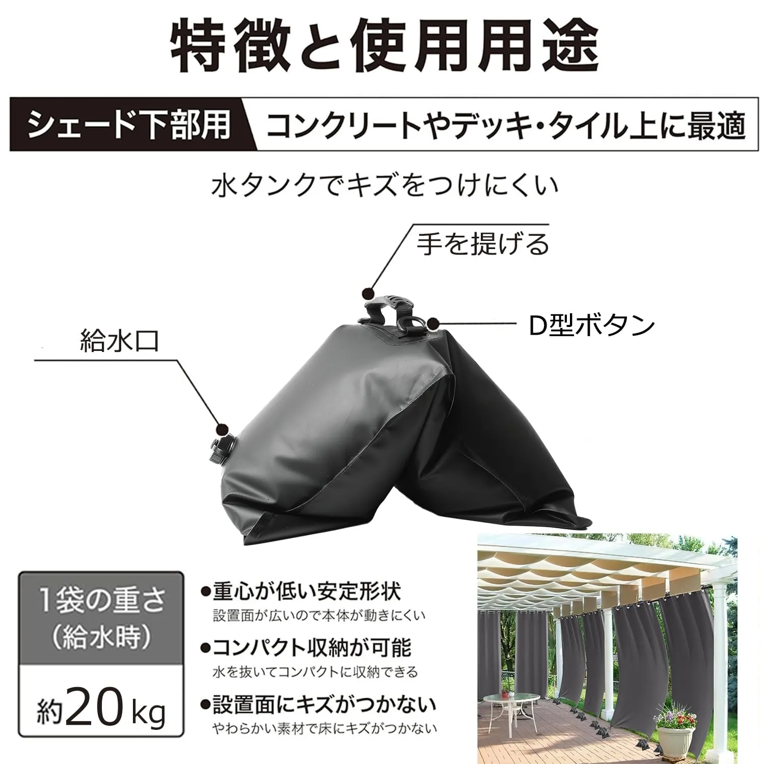 新品 【新改良】シェード 重し 固定 注水ウエイト 安定用重し袋 最大20Kg 下部用 サンシェード 取付 ベランダ 目隠し 注水タイプ アウトドア 万能 転倒防止 重ね置き可能 強固 (2)