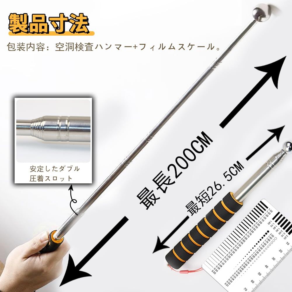 新品 打音診断棒 伸縮式 全長200CM クラックスケール 打診棒 下地探し コンクリート 検査メジャー 聴診棒 検査棒 打診ハンマー タイル 打音棒 壁 工事 打音検査 壁 点検ハンマー 2点セット