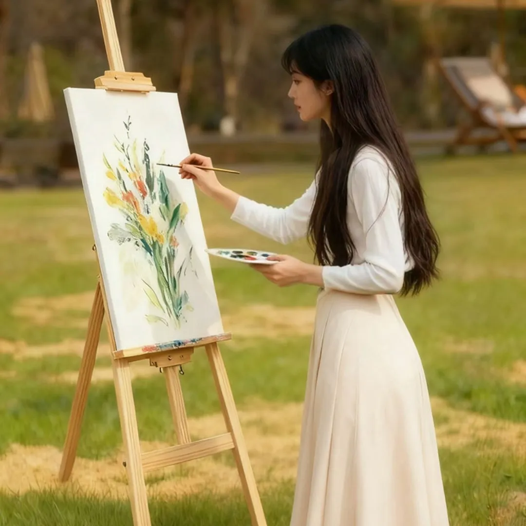 ■ しっかり支える安定構造 ・三脚タイプで安定感に優れ、屋内での制作・展示にぴったり。 ・下部の受け棚と上部ストッパーでキャンバスをしっかりホールドし、傾きやズレを防ぎます。