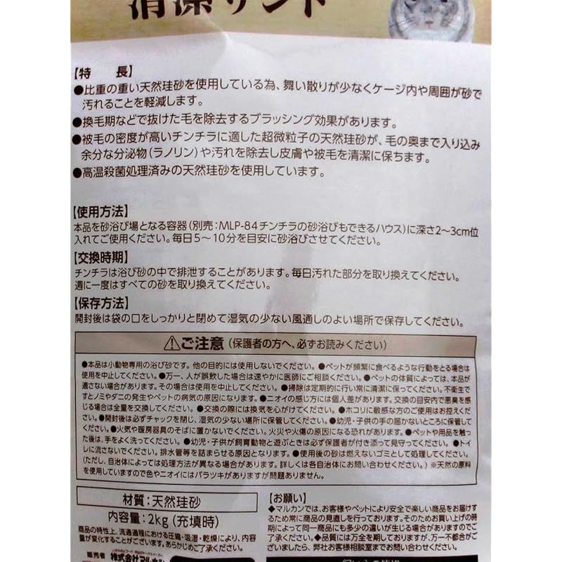 【商品説明】 マルカン チンチラの清潔サンド 2kg×2袋セット(オリジナルコースター付)