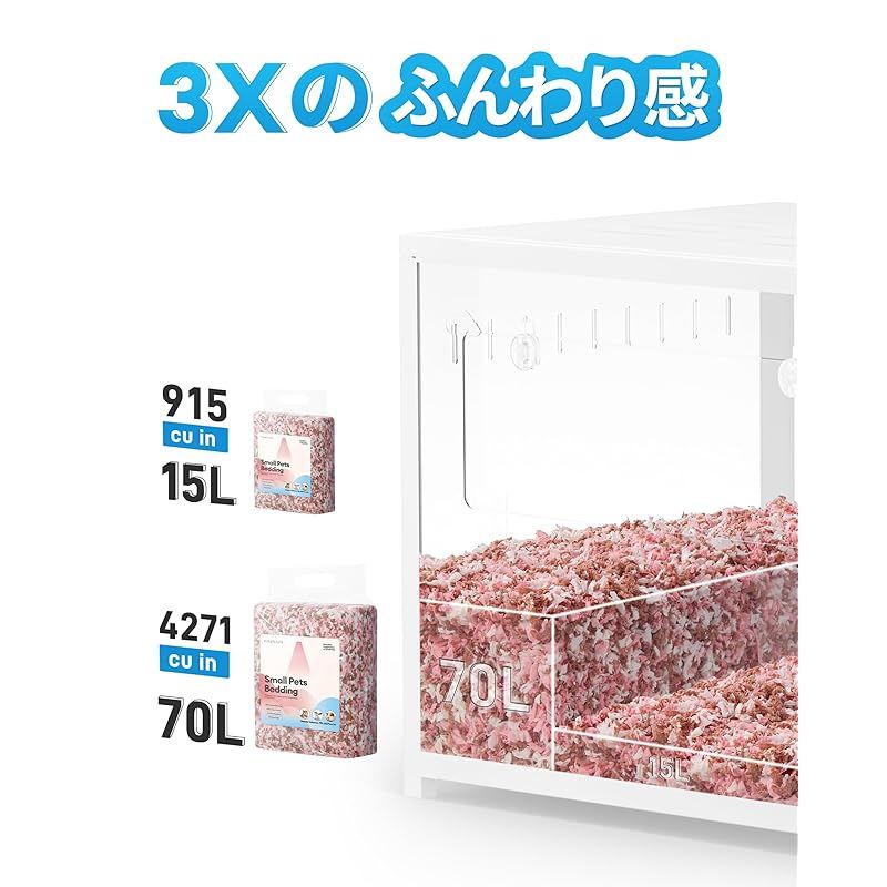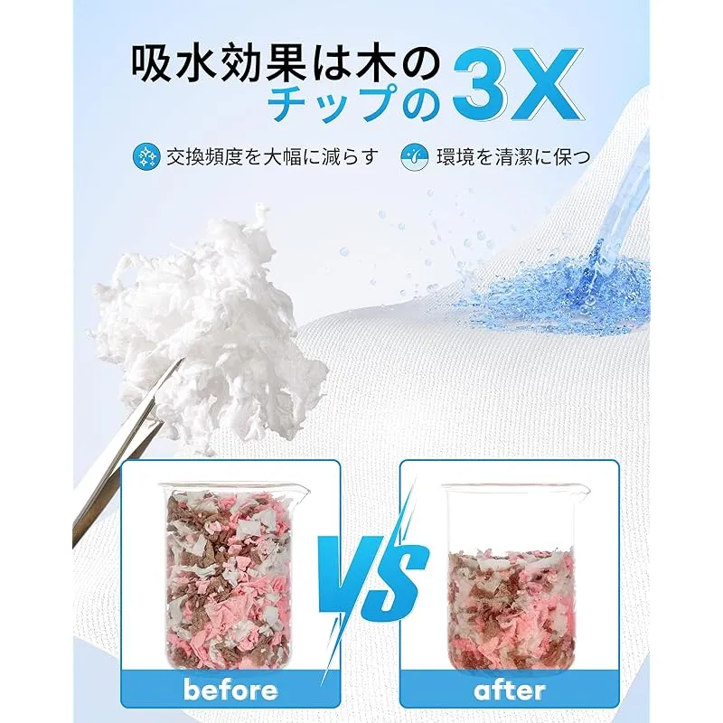 【優れた通気性と消臭性】吸水効果は木のチップの3倍!原木由来の消臭成分が含まれているため、安心して使用できる上、菌の増殖も防ぎます。10日以上にわたって消臭効果を持ち、優れた吸湿性があるため、冬は暖かい巣材として、夏は快適に使用できます。