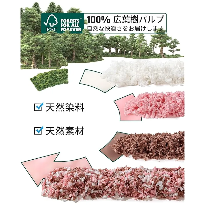 【高品質な天然素材】BUCATSTATEのハムスター床材は、FSC認証を取得した適切に管理された林場から採取された5年生の広葉樹を使用し、信頼の品質をお届けします。二次精製されたパルプを採用しているため、粉塵が少なく、通気性も抜群です。木のチップと比較して粉塵の発生がほとんどなく、優れた吸水性と消臭効果を兼ね備えています。ペットと飼い主様にやさしい低アレルギー素材です。