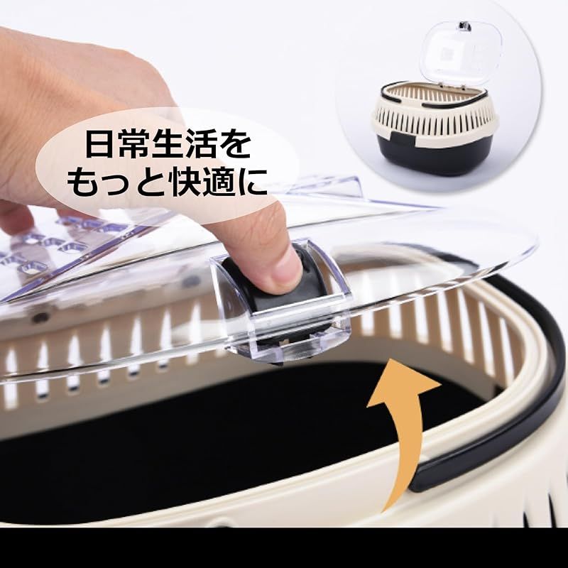 【天井の扉付きのペットキャリー】上から出し入れできる天井扉つきのペット用お出かけキャリーです。コンパクトにも関わらず中は広々で快適に過ごせます。