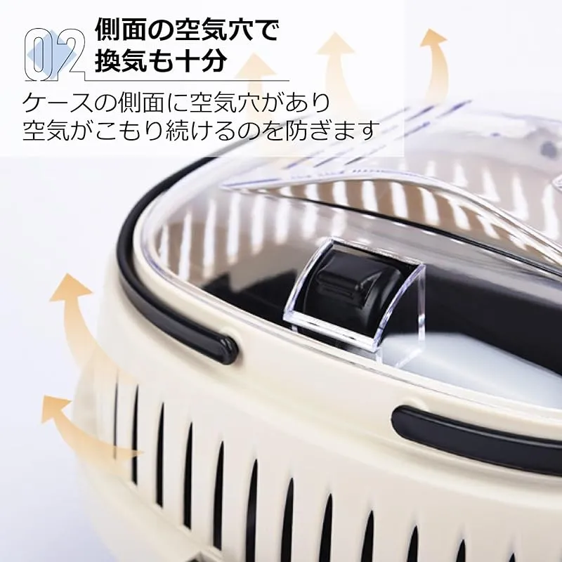 【側面の空気穴で換気も十分◎】ケースの側面に空気穴があり空気がこもり続けるのを防ぎます。上部は透明なのでペットの様子も確認できます。
