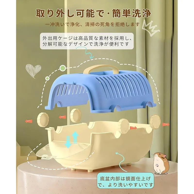 【高品質素材,簡単洗浄】 ケージ本体は全体的に無毒・無臭の安全プラスチック素材(PP+PET)で製造され、有害物質を含まず小動物の健康を守ることができます。ケージは分割可能な設計で洗浄が容易で、底盆内部は滑らかな表面処理が施され「一冲洗いで浄化」が可能です。汚れがついても、水洗いで簡単に清潔に戻せるため、日常のメンテナンスが手軽です。