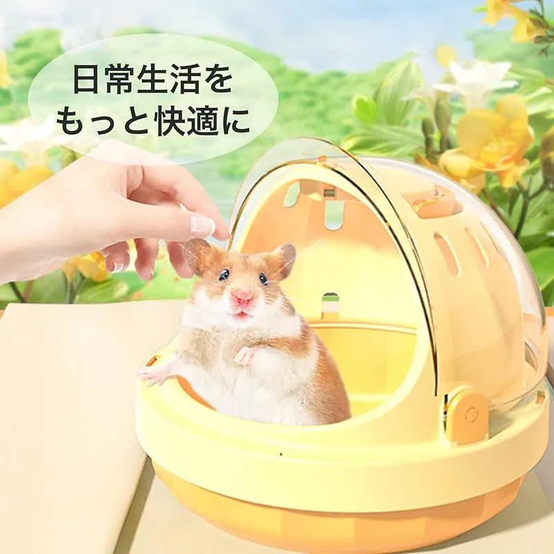 【給水器付きのペットキャリー】ハムスターや小動物の快適な移動を可能にします。給水器付きで、長時間の外出でも安心です。通気性と快適性を兼ね備え、旅行や外出時に便利です。