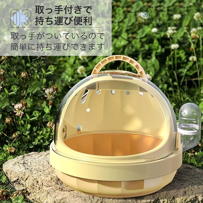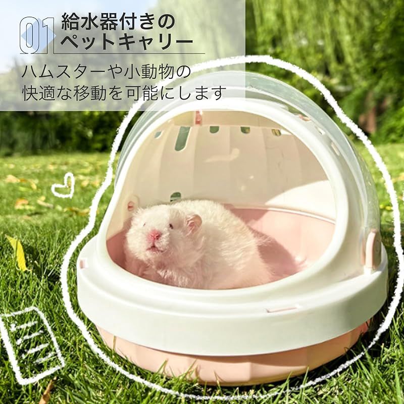 【給水器付きのペットキャリー】ハムスターや小動物の快適な移動を可能にします。給水器付きで、長時間の外出でも安心です。通気性と快適性を兼ね備え、旅行や外出時に便利です。