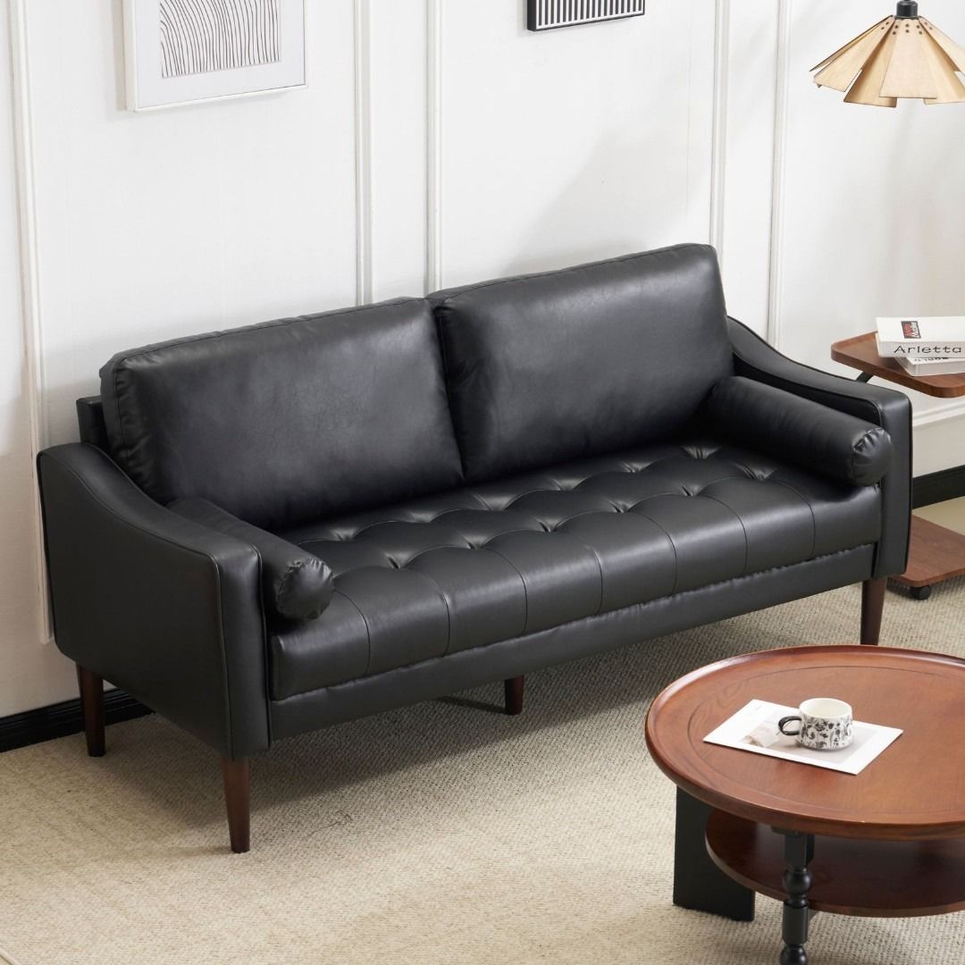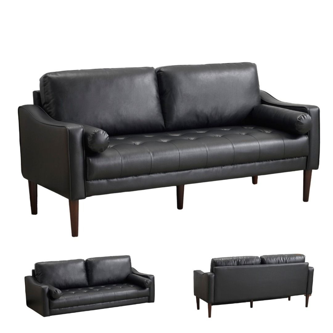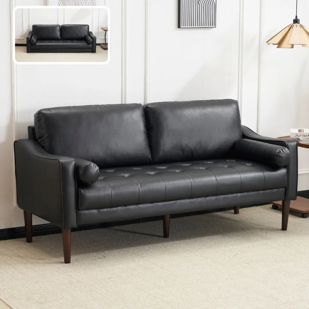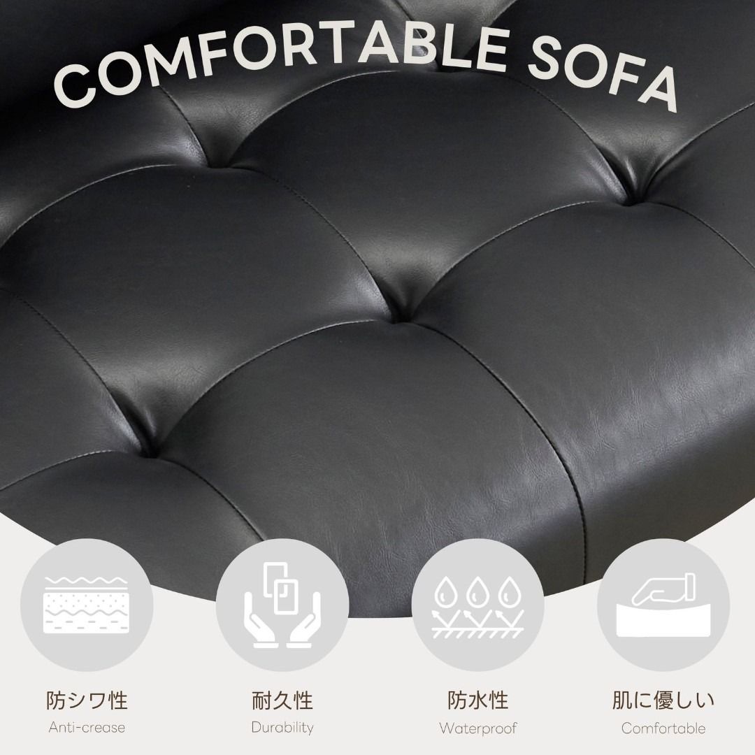ソファ 3人掛け カウチソファ リビングソファ PUレザー 肘掛け付き 枕付き 高耐久 構造 二層クッション 収納 省スペース 北欧風デザイン お手入れ簡単 組立簡単 ローソファ仕様 木脚付き 洗練された 高級感 クッション付き 多用途