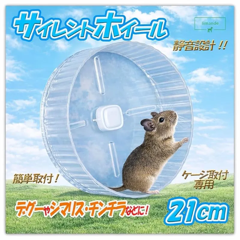 【商品概要】 ??ハムスターなど小動物のストレス発散や運動不足解消をサポートするために、特別に設計された『超静音コンパクト サイレントホイール』高品質の静音ダブルベアリングを使用することで、耐久性が向上し驚くほどの静音性を実現しています。 ??あそび道具、グッズ遊具用品や玩具としてはもちろん、ケージ内での遊び場、散歩道具、アスレチックなどの小動物用品として最適です。夜行性のハムスターなど、「まわし車はうるさい」の概念を覆すほど、静かを体験してください。ケージへの配置は自由自在、あそび場を増やしてあげたい飼い主さんにおススメです! ??取付説明書(日本語版)が付属。大きめ21cmホイールはケージ取付のみ可能です。 ??汚れたと思われたら製品は水洗い可能ですが、注意が必要です。「回転部分(ベアリング)は水に濡らさないようにしてください。 ?対象小動物:ハムスター・ハリネズミ・デグー・セキセインコ・文鳥・小鳥などに。小さめの個体なら、オカメインコ・チンチラ・モモンガ・フクロモモンガ・モルモット・コザクラインコなど。