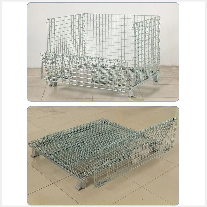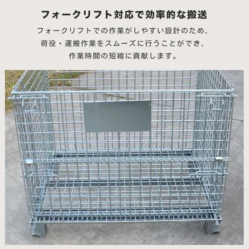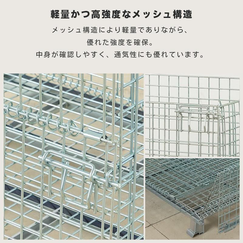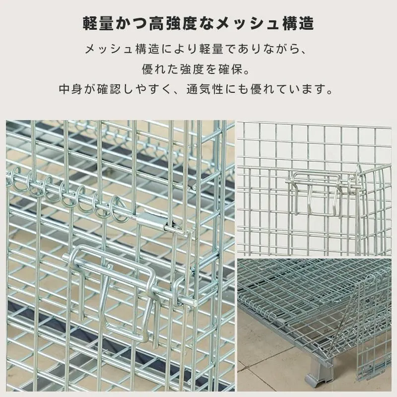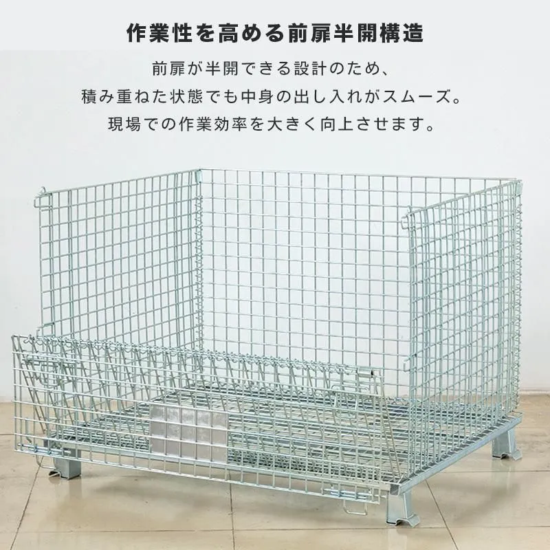メッシュパレット メッシュボックス 網パレ 網かご 金網 800x600x640mm 折りたたみ 前扉半開式 耐荷重300kg メッキ仕上げ カゴパレット 運輸 倉庫