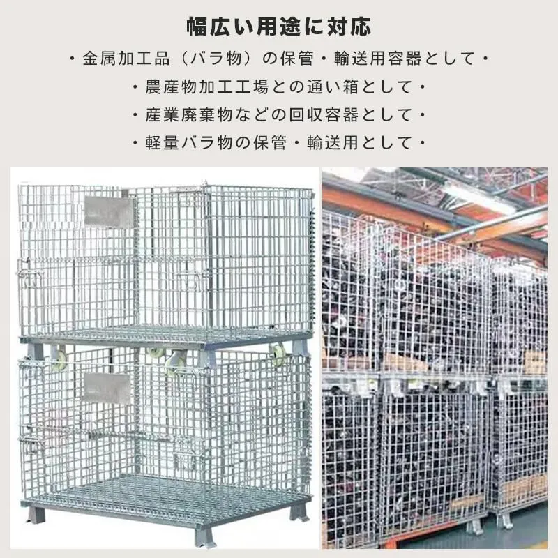 【幅広い用途に対応】 以下のような多様な現場でご使用いただけます。 金属加工品(バラ物)の保管・輸送用容器として 農産物加工工場との通い箱として 産業廃棄物などの回収容器として 軽量バラ物の保管・輸送用として 商品説明