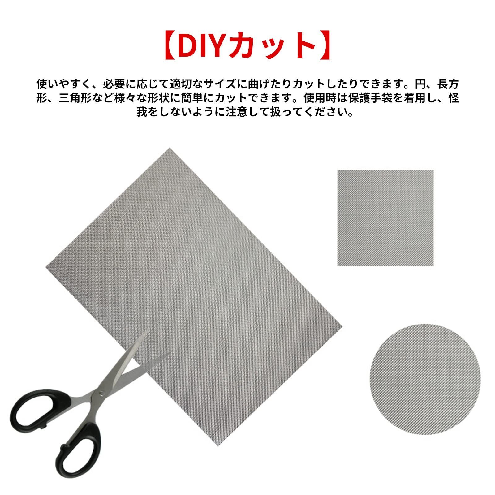 【ステンレスメッシュ仕様】サイズ:300*210mm(約A4サイズ)、線径:0.4mm、網目:1mm、素材:304ステンレス、パッケージ内容:20メッシュステンレス平織金網×3枚