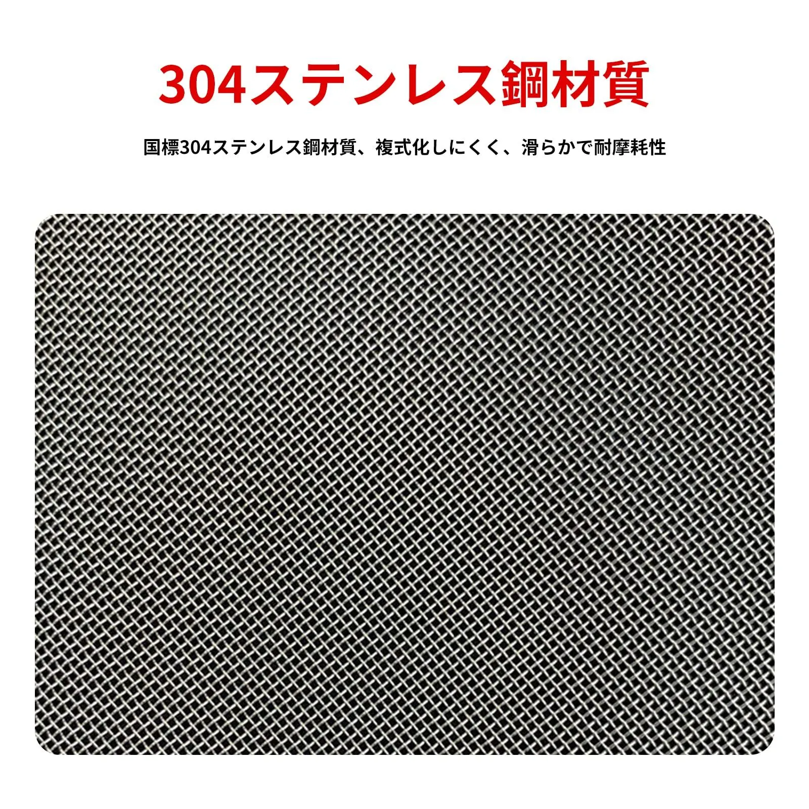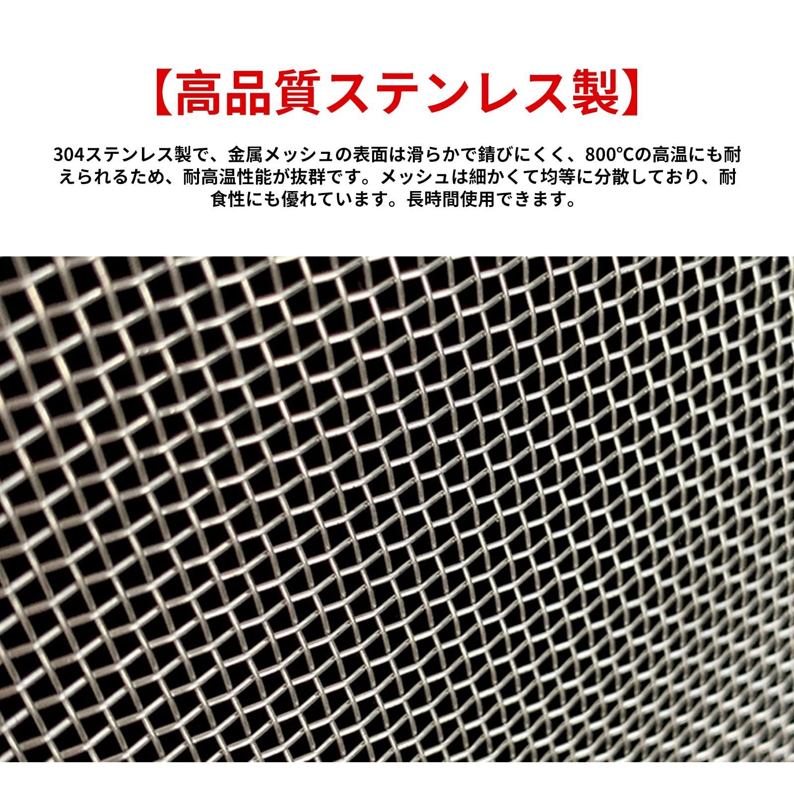【高品質ステンレス製】304ステンレス製で、金属メッシュの表面は滑らかで錆びにくく、800℃の高温にも耐えられるため、耐高温性能が抜群です。メッシュは細かくて均等に分散しており、耐食性にも優れています。長時間使用できます。