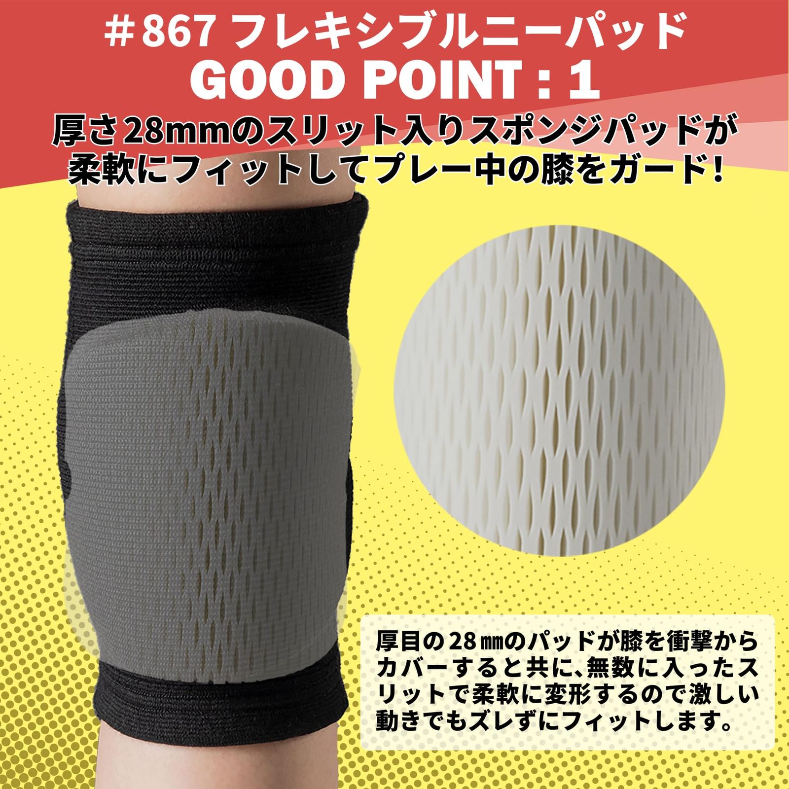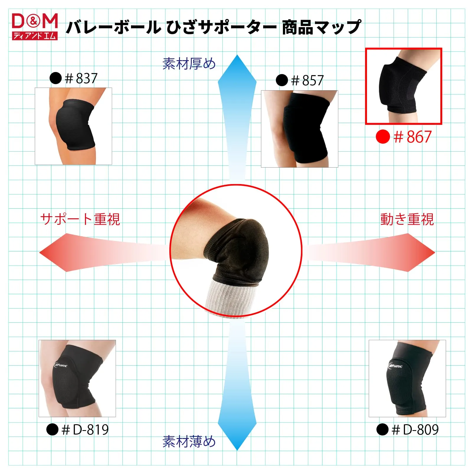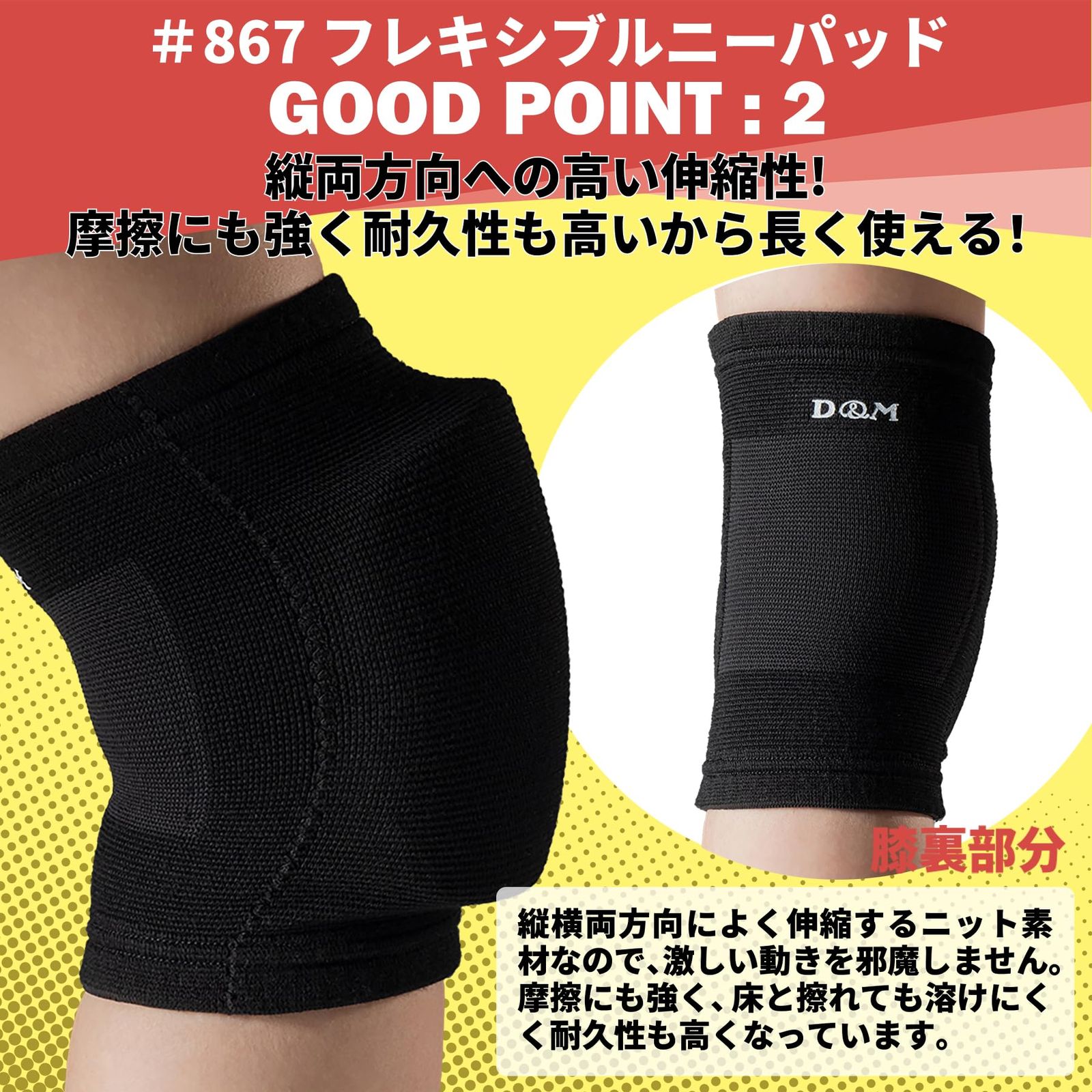 【人気商品】通気性 サポート 柔軟 固定 フレキシブルパッド 伸縮 867 1個入り 吸汗 大人用 Mサイズ 速乾 黒 厚型パッド 衝撃吸収 28mm ニーパッド JVA公認 バレーボール 膝サポーター スポーツ D&M(ディーアンドエム)