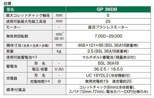 HiKOKI(ハイコーキ) 36V コードレス ハンドグラインダ 軸径6mm 7000~29000回転 ダイヤル式無段変速 パドルスイッチ式 蓄電池、充電器、ケース別売り GP36DB(NN)