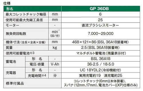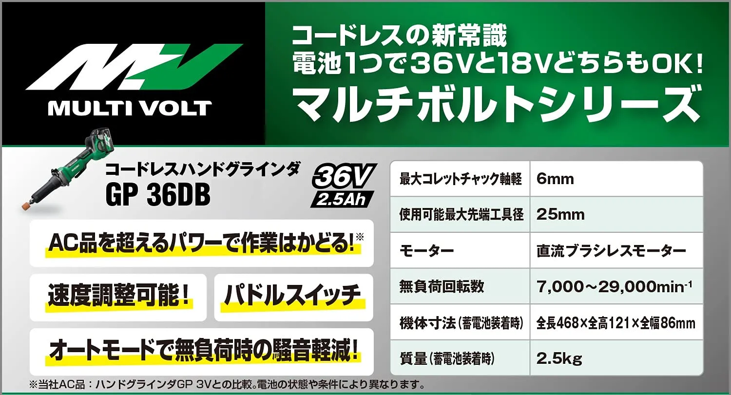 新品 HiKOKI(ハイコーキ) 36V コードレス ハンドグラインダ 軸径6mm 7000~29000回転 ダイヤル式無段変速 パドルスイッチ式 蓄電池、充電器、ケース別売り GP36DB(NN)