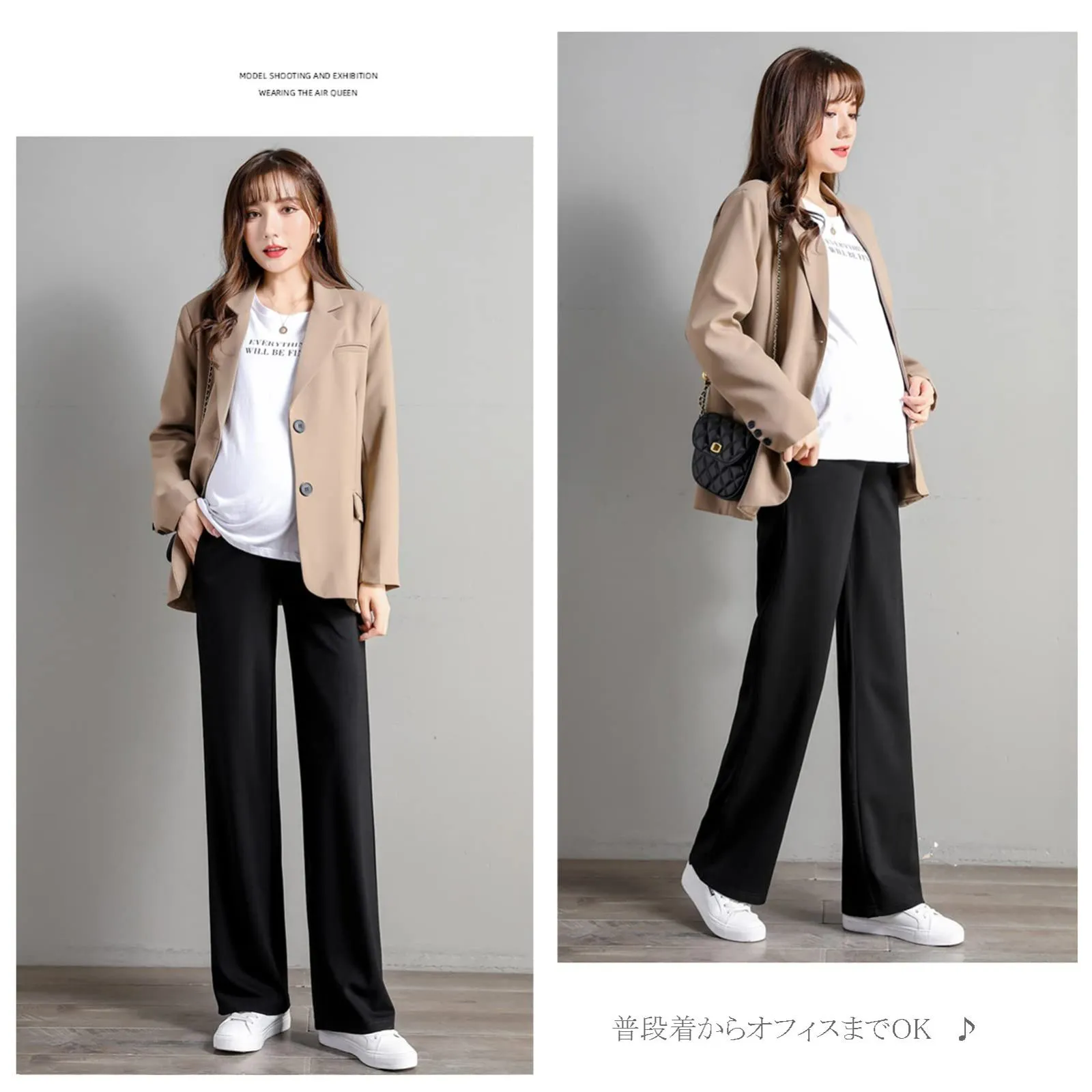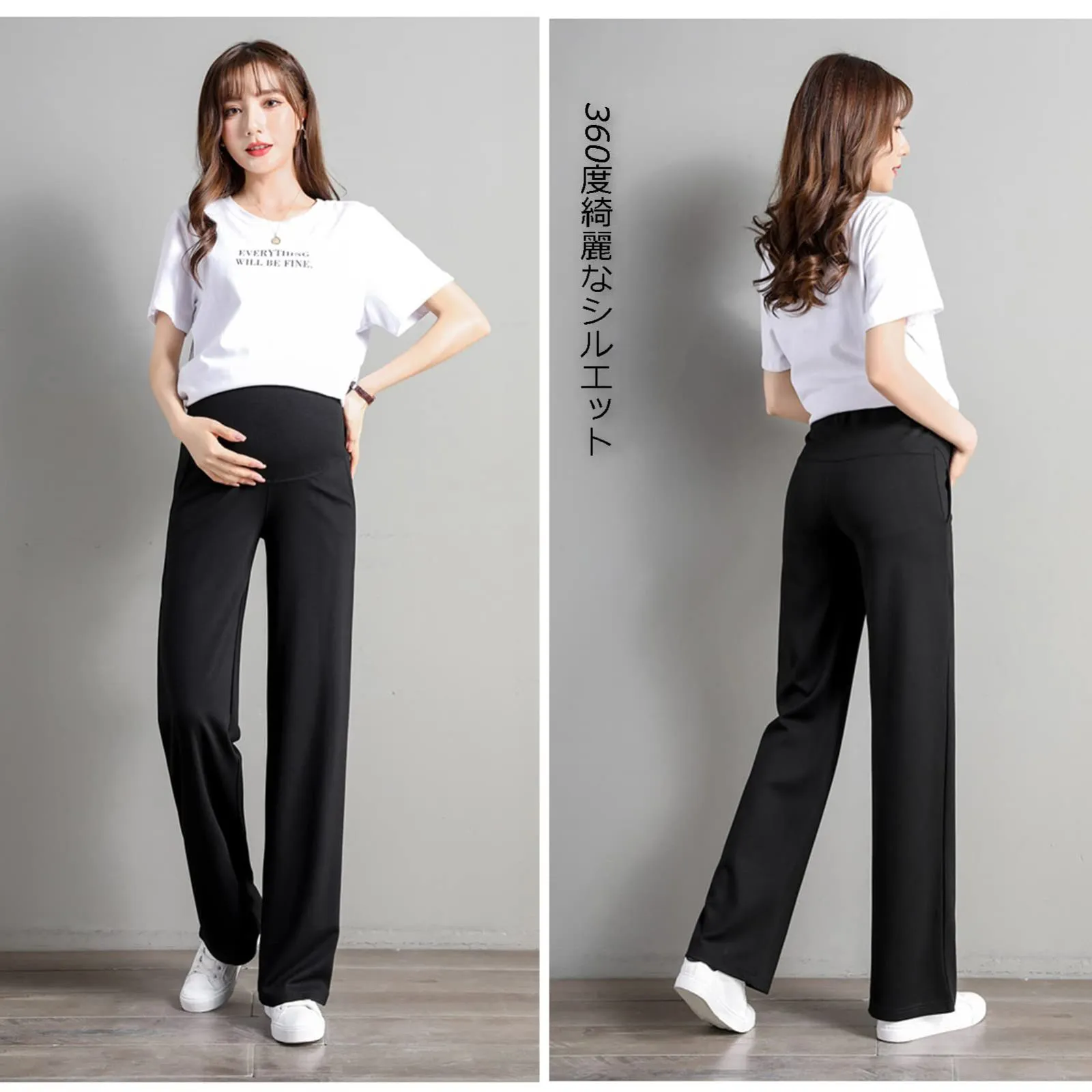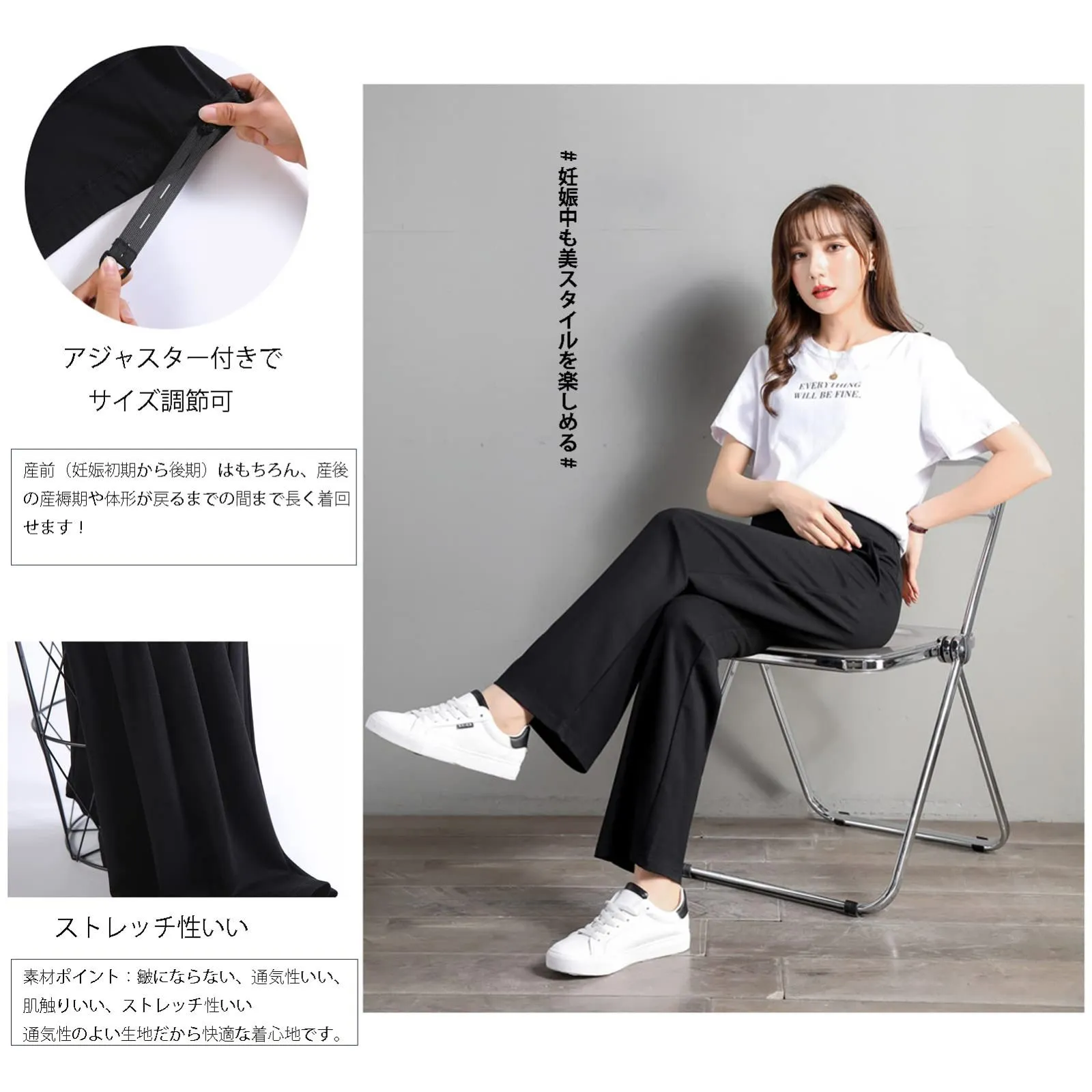 [Onabebi] マタニティパンツ 妊娠服 ウエスト調整 ブラック ワイドパンツ 着痩せ効果 足長効果 普段着からオフィスまで 産前産後 ストレッチ オールシーズン