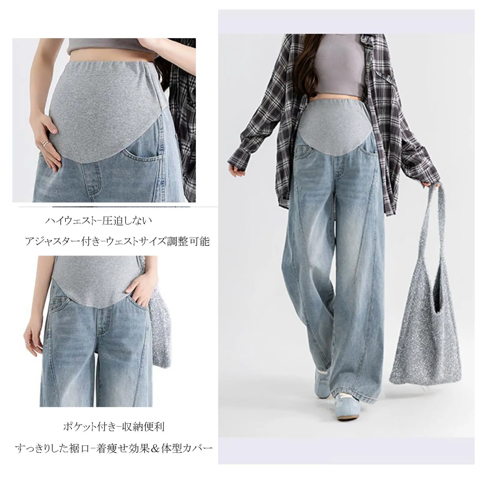 ロング丈 ワイドパンツ 妊娠服 ウエスト調整 ジーンズ 着痩せ効果 マタニティパンツ 体型カバー [Shubeiyi] ポケット付き