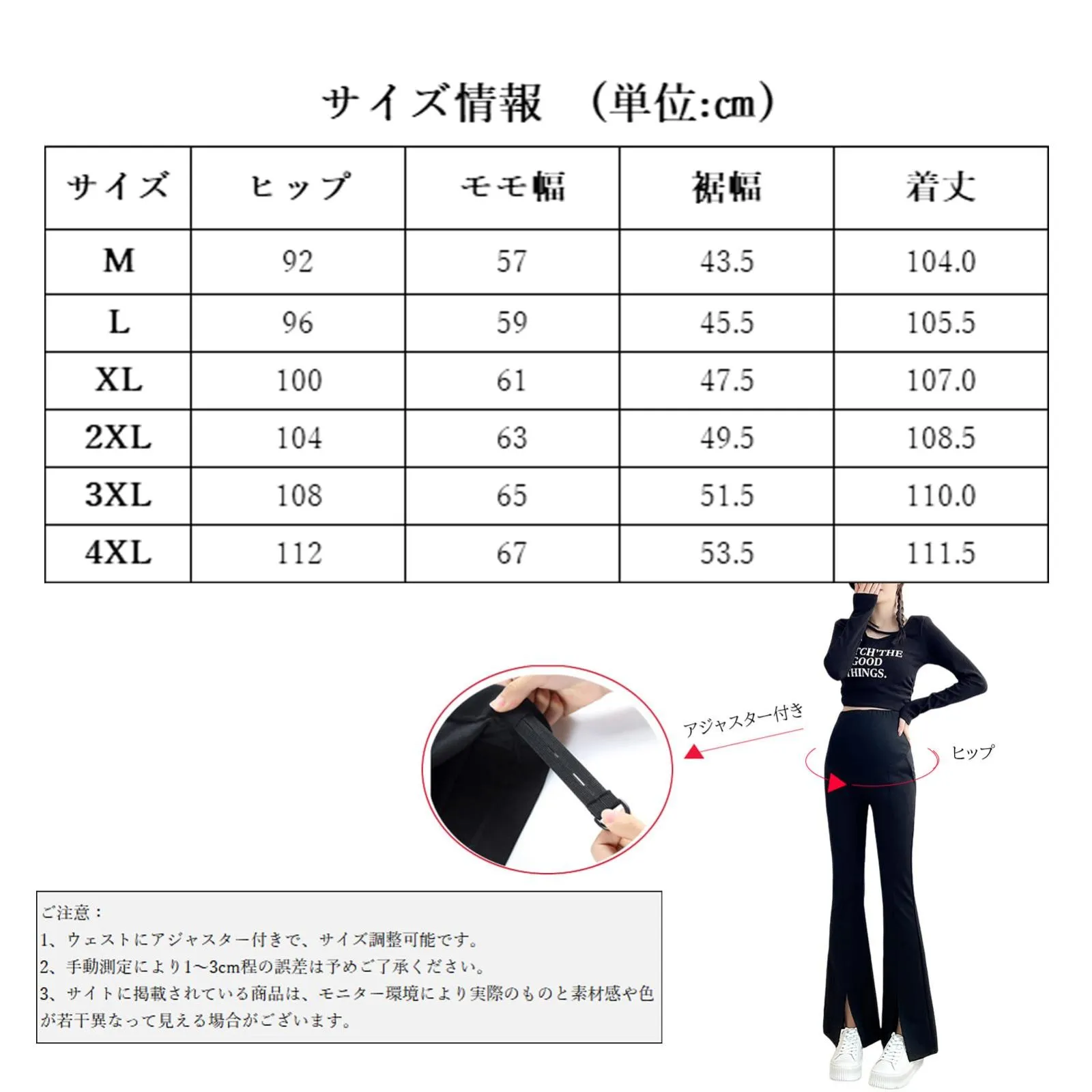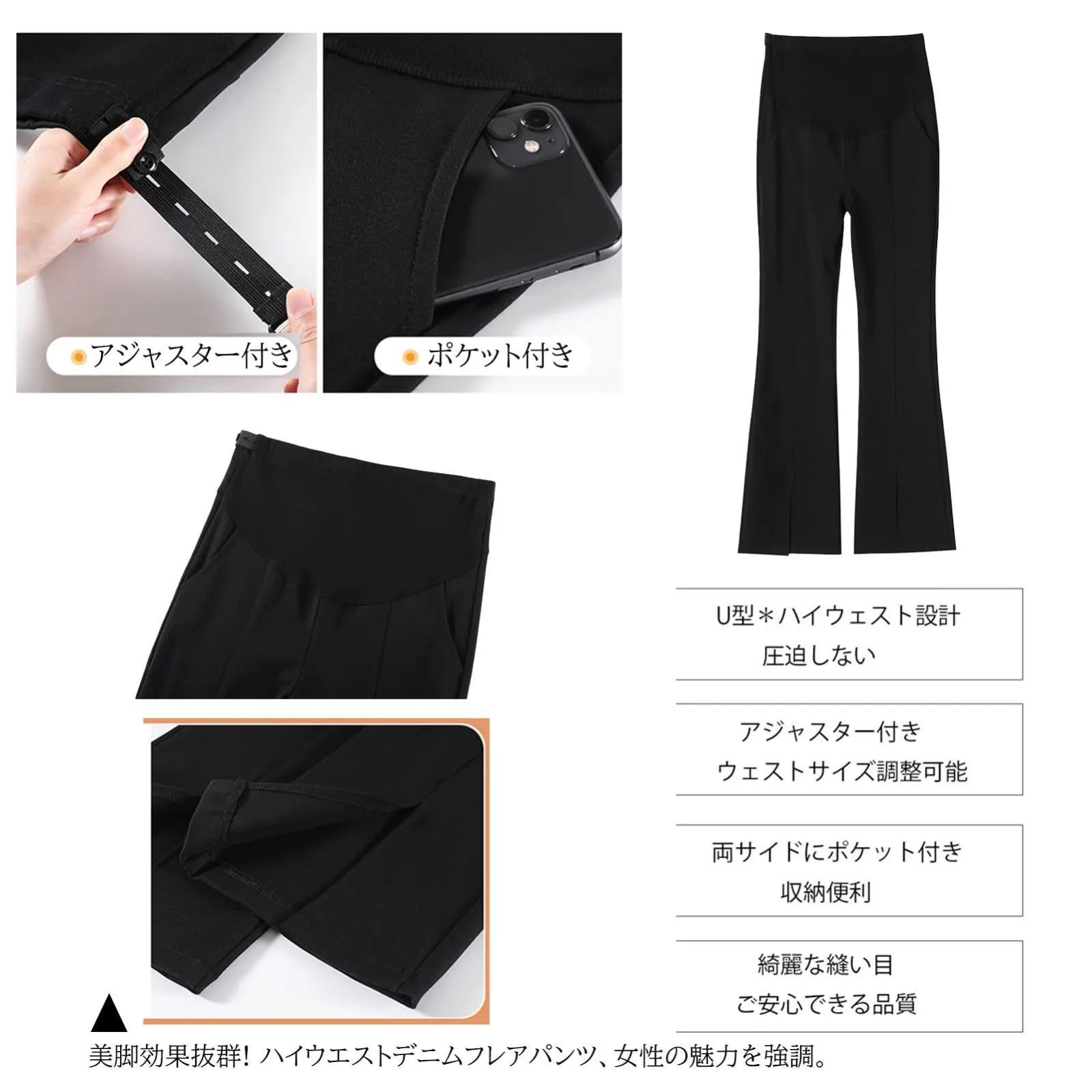 [Onabebi] マタニティパンツ フレアパンツ スリット入り ブーツカット妊娠のズボン ウエスト調整 ポケット付き 美ライン カジュアル 足長効果