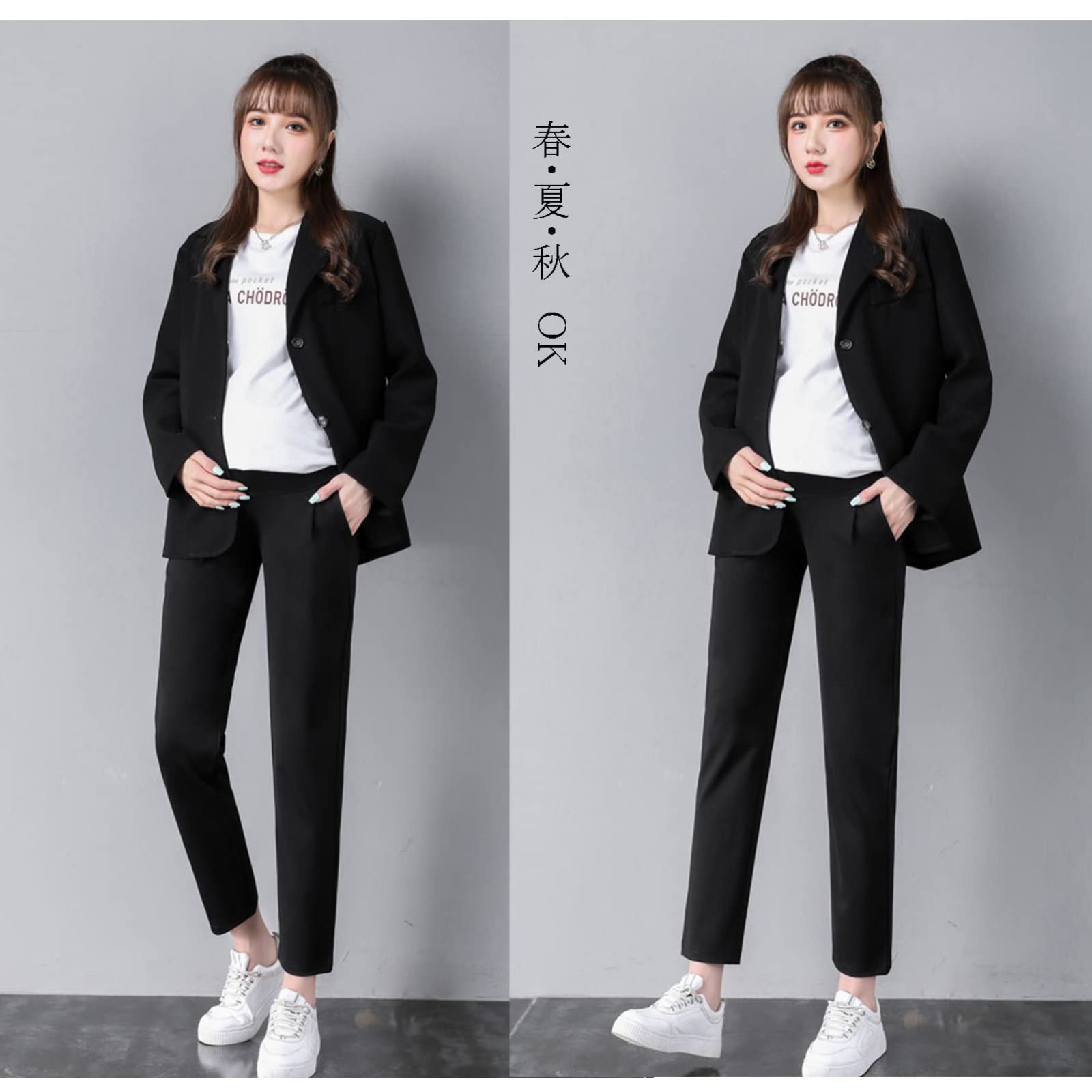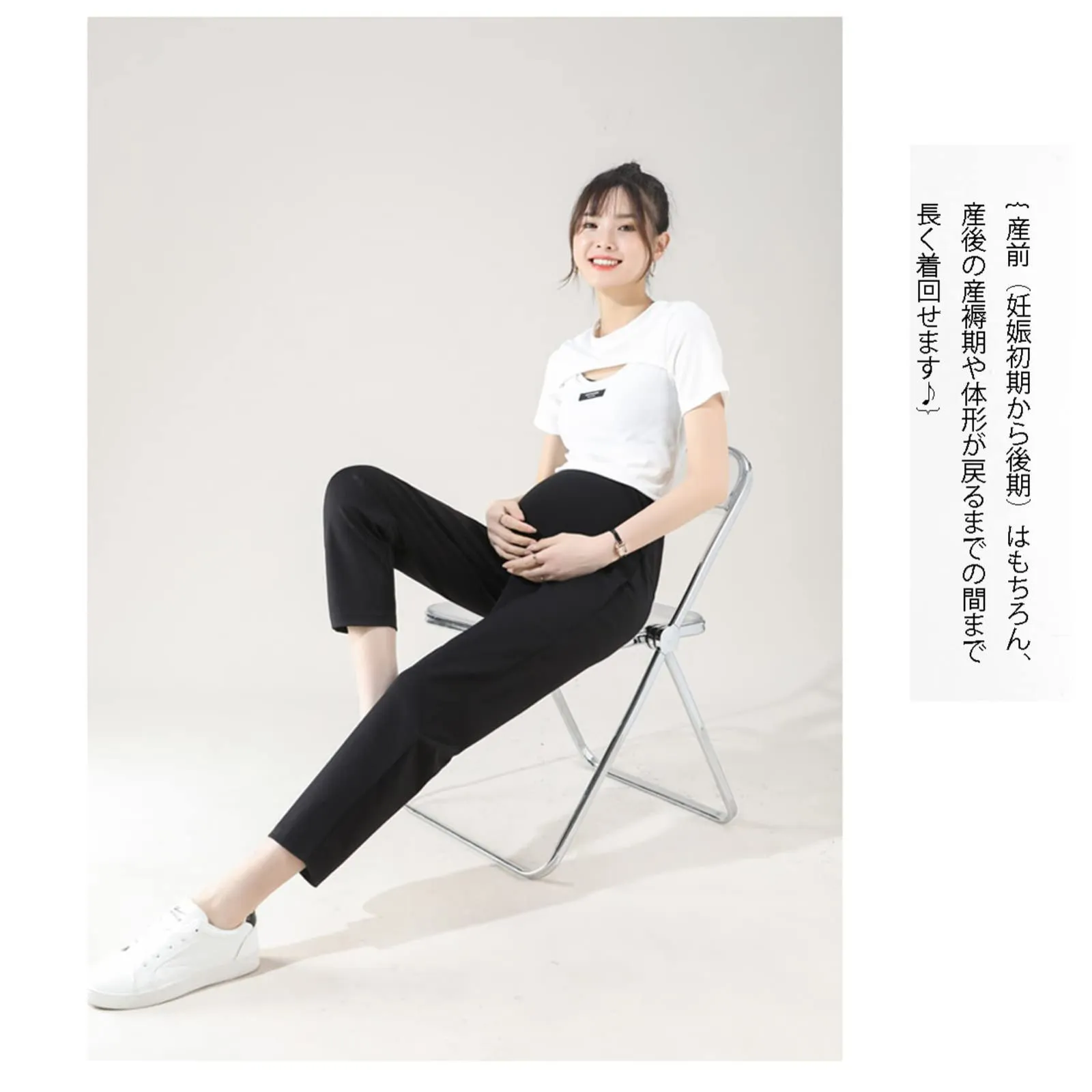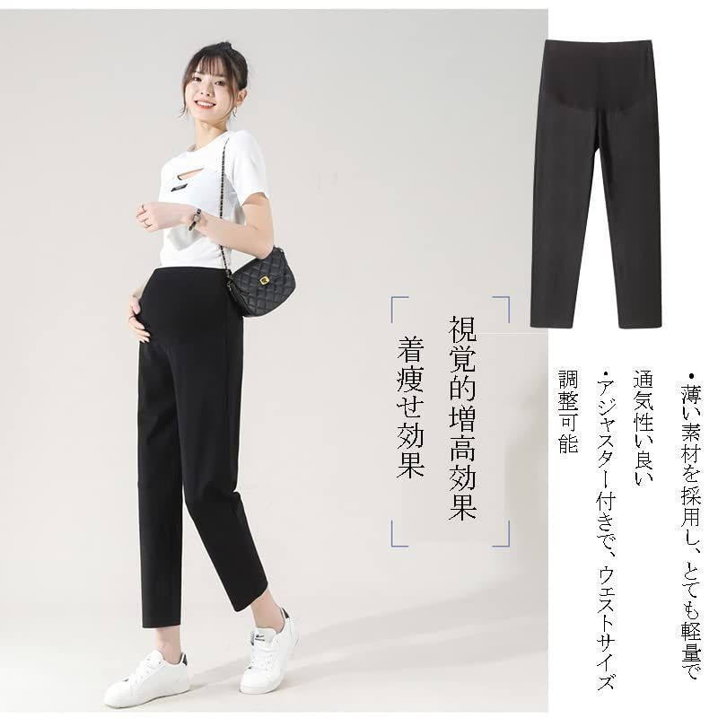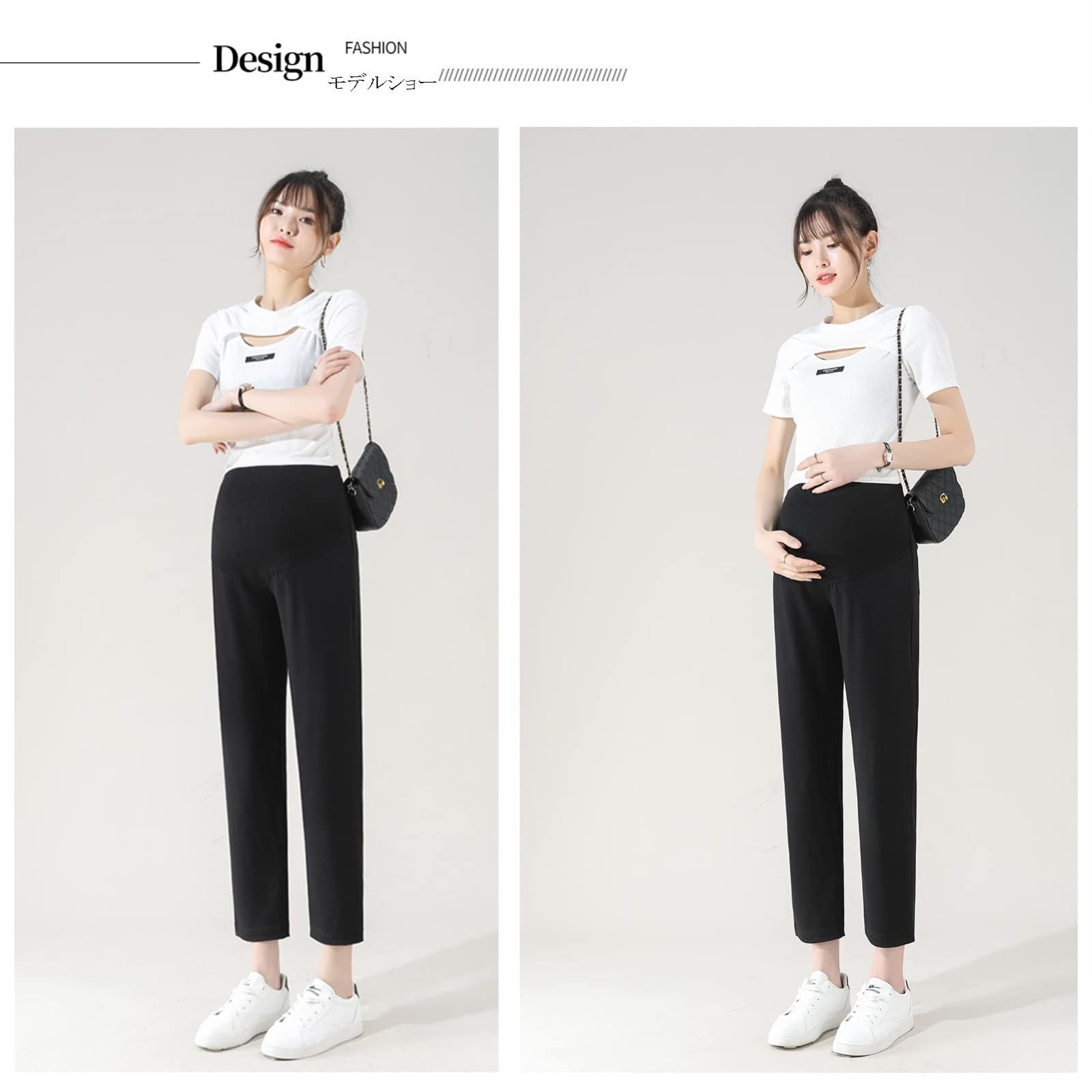 [Onabebi] マタニティパンツ 九分丈 ズボン 妊娠服 ブラック フォーマル ウエスト調整 薄てと裏起毛タイプ ストレッチ カジュアル 着痩せ効果 春夏秋冬