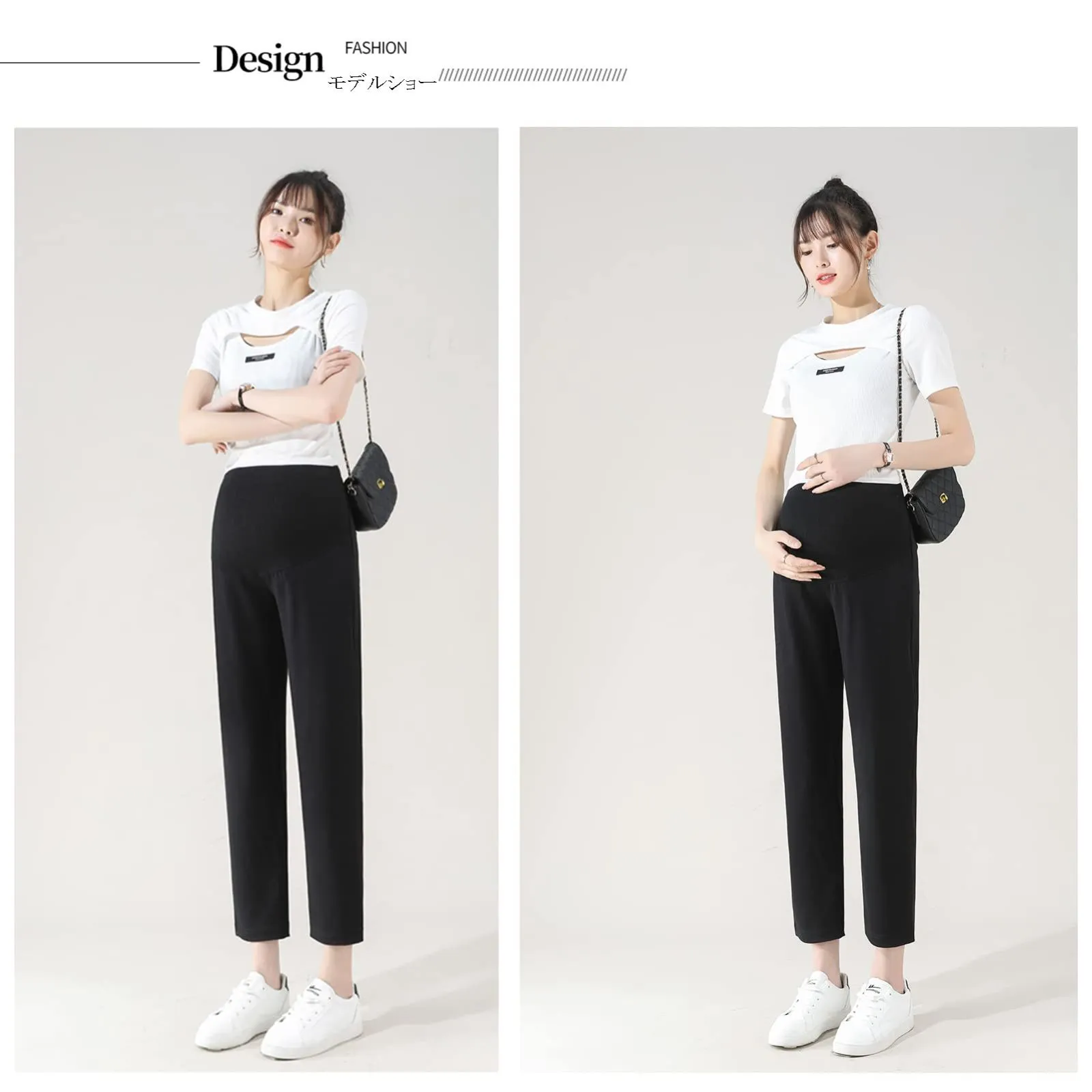 着痩せ効果 カジュアル ストレッチ 薄てと裏起毛タイプ ウエスト調整 春夏秋冬 フォーマル ブラック 妊娠服 ズボン 九分丈 マタニティパンツ [Onabebi]