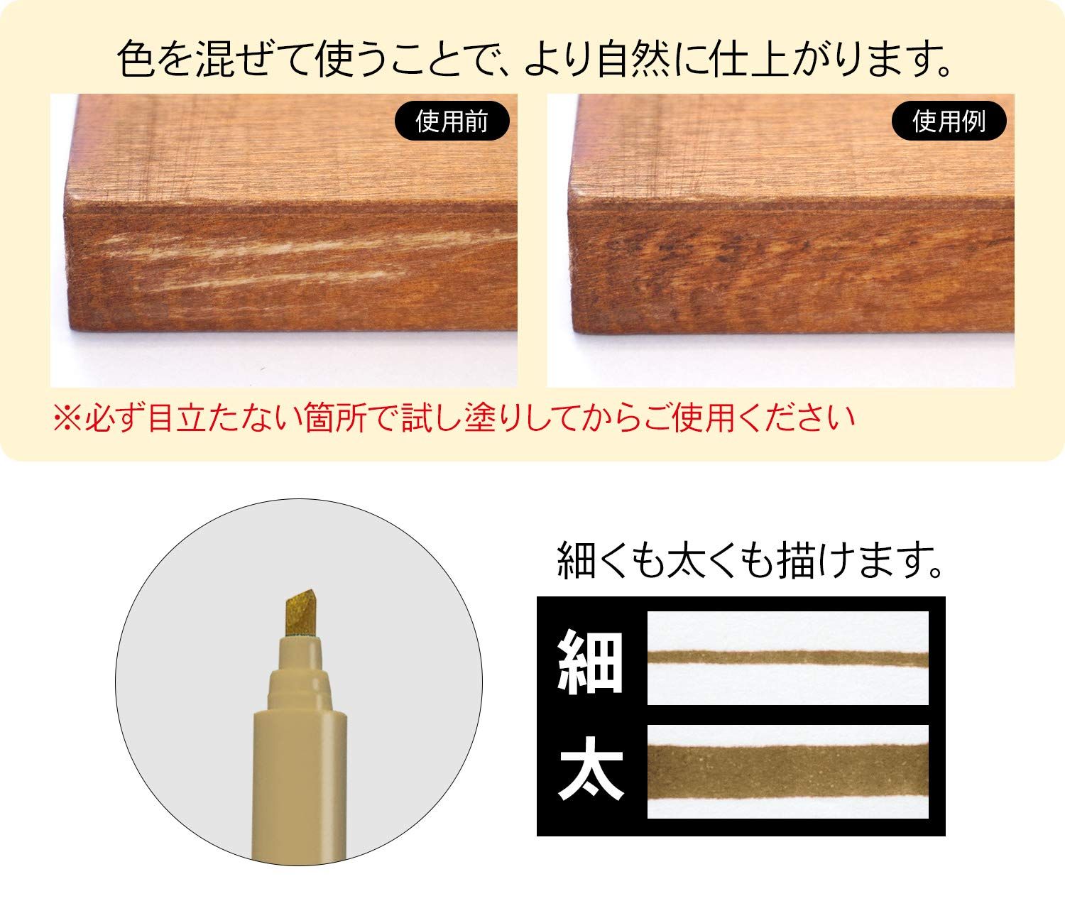 ●必ず目立たない箇所で試し塗りをし、色の確認をしてからご使用ください