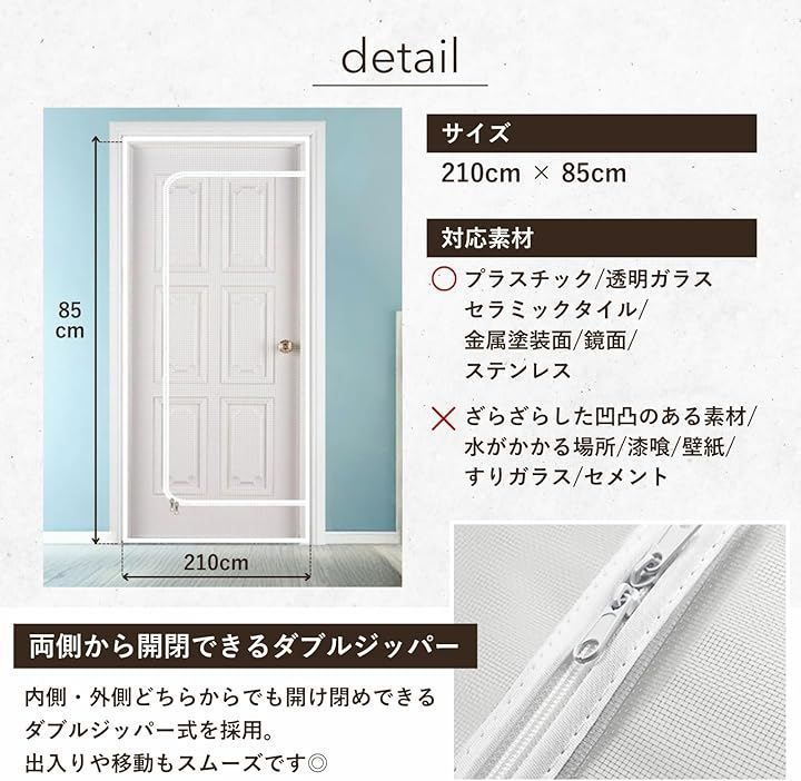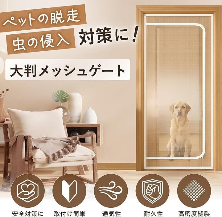 ideamall 猫ドア 犬ドア 網戸 ゲート 柵 ペットゲート メッシュ 貼るタイプ 穴あけ不要 85x210cm (ホワイト, D型)