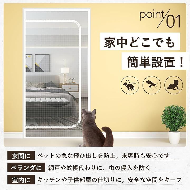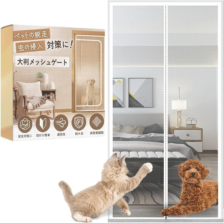 ideamall 猫ドア 犬ドア 網戸 ゲート 柵 ペットゲート メッシュ 貼るタイプ 穴あけ不要 85x210cm (ホワイト, 中開き型)