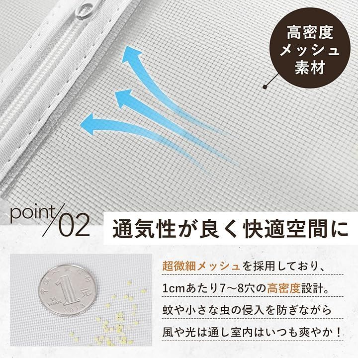 「通気性が良く快適空間に」超微細メッシュが小さな虫の侵入を防ぎながら、風や光は通しいつも爽やか。