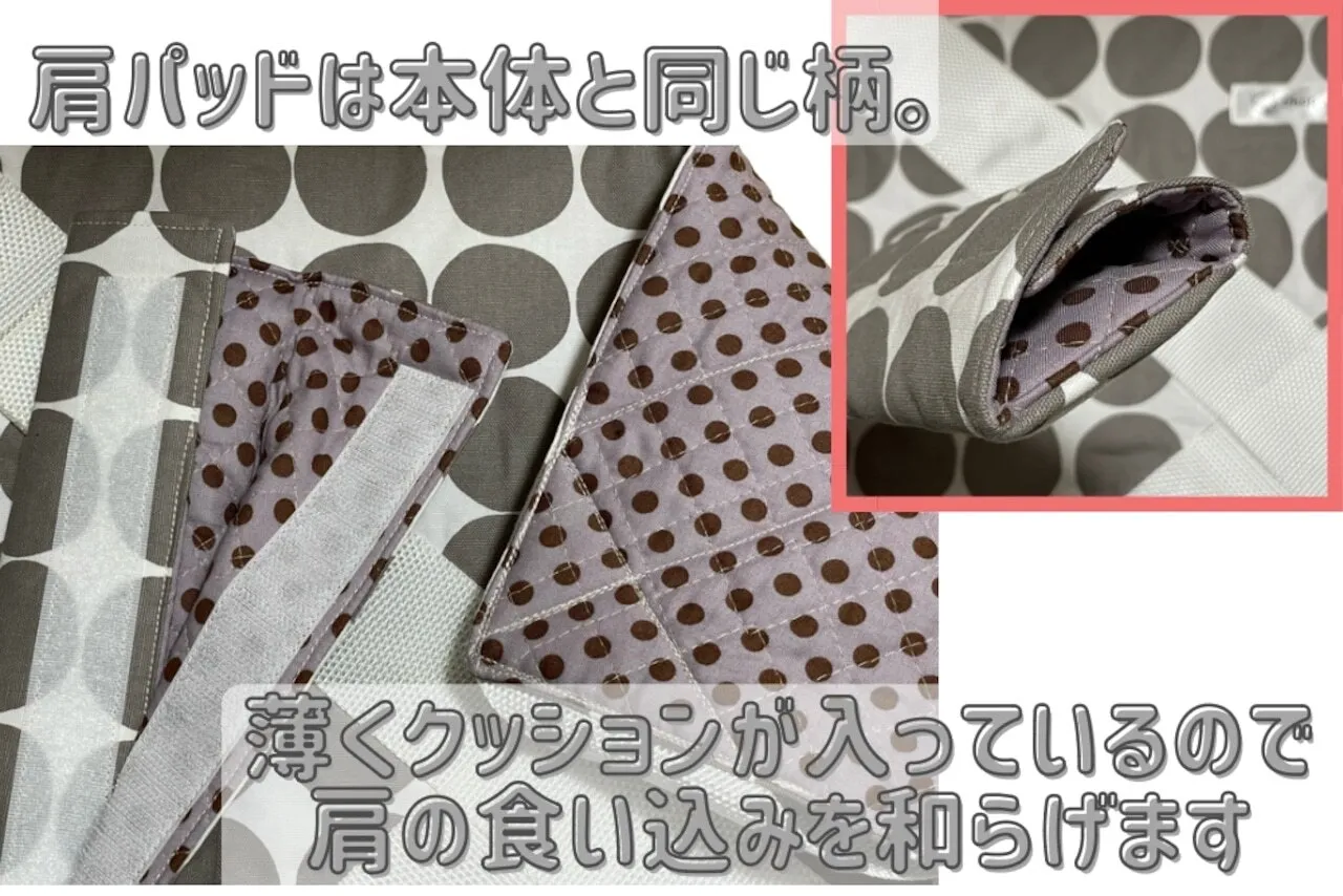 本体と同じ柄の肩パットが付いています。