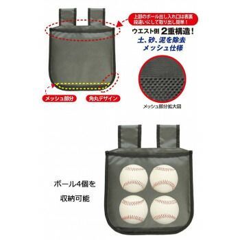 バッグの変形を防ぐオックスフォード織り生地を使用しています。ウエストにフィットする角丸デザインで、ボールが中で踊りません。硬式球・軟式球4個を収納できます。