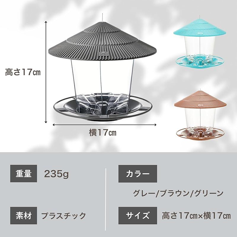 【商品詳細】 ブランド:ideamall 商品種別:鳥の餌入れ 商品名:ideamall バードフィーダー 野鳥 餌台 鳥 餌入れ 小鳥 屋外 (グレー) 製造元:合同会社イデアモール 色:グレー